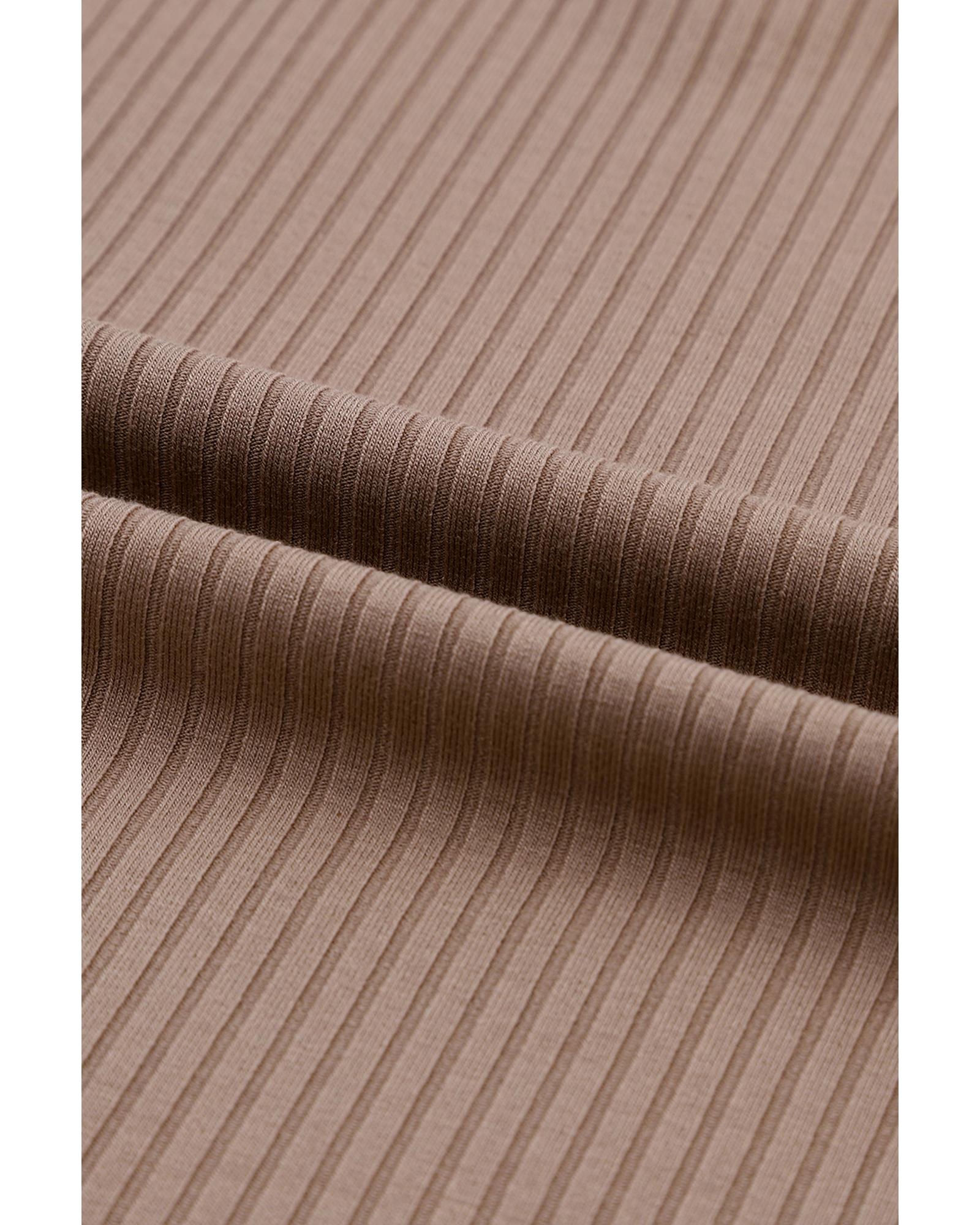 - Versatile and stylish khaki ribbed knit top