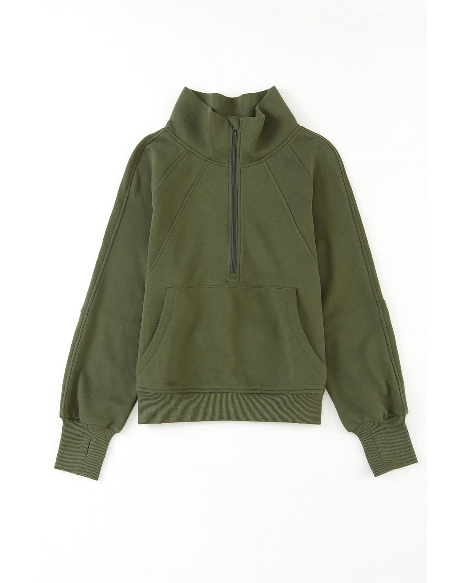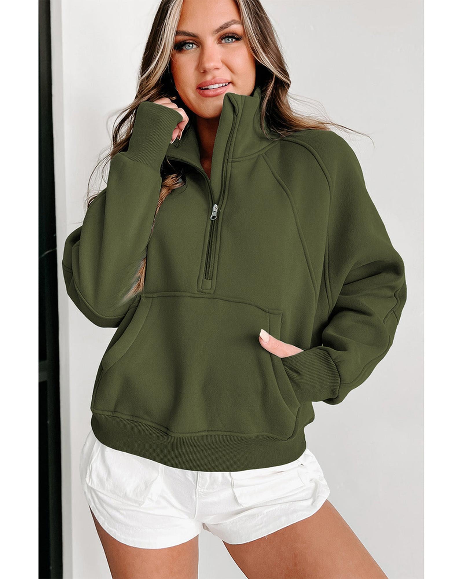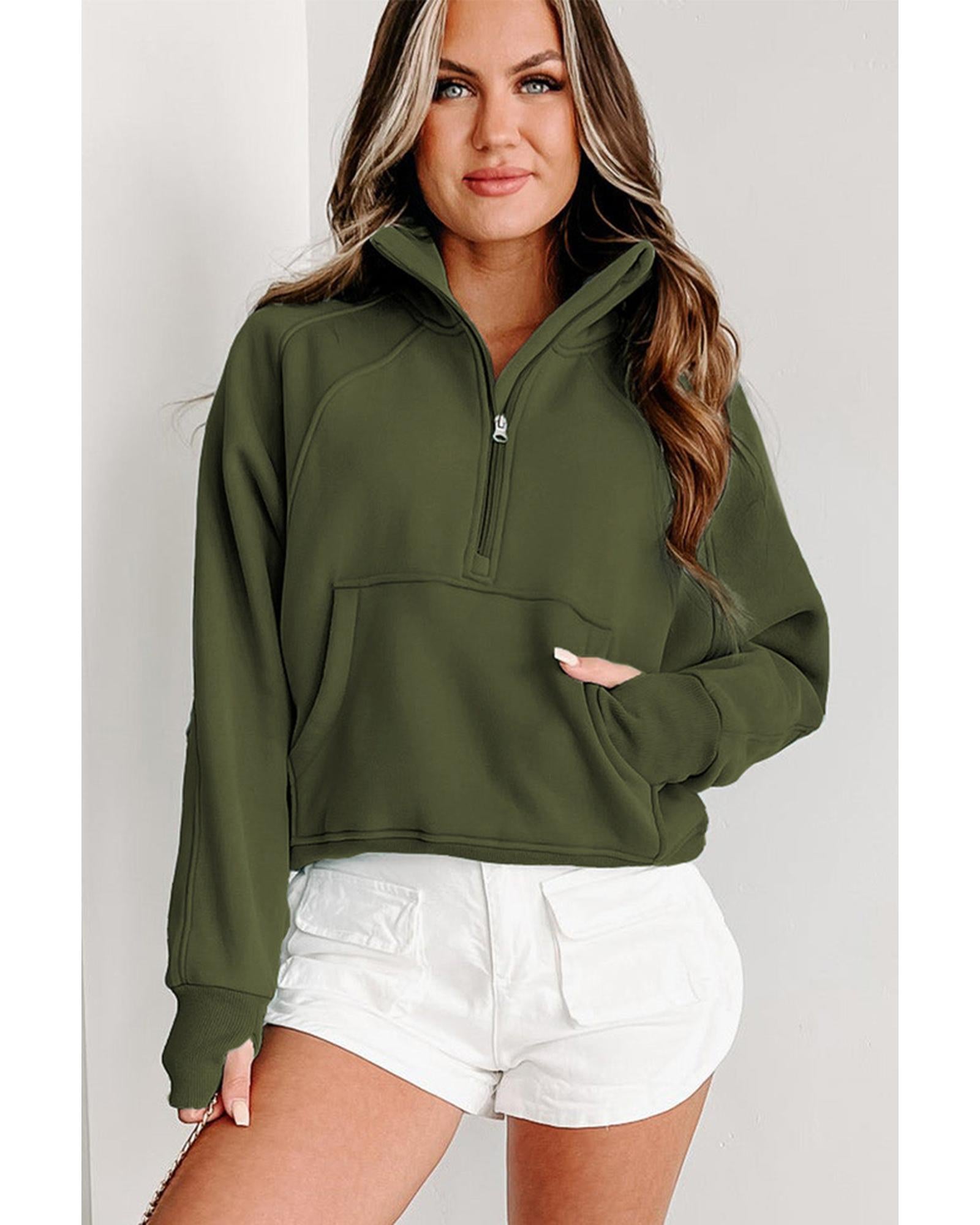 Azura Exchange Ribbed Thumbhole Sleeve Sweatshirt with Stand Collar and Zip Closure - XL