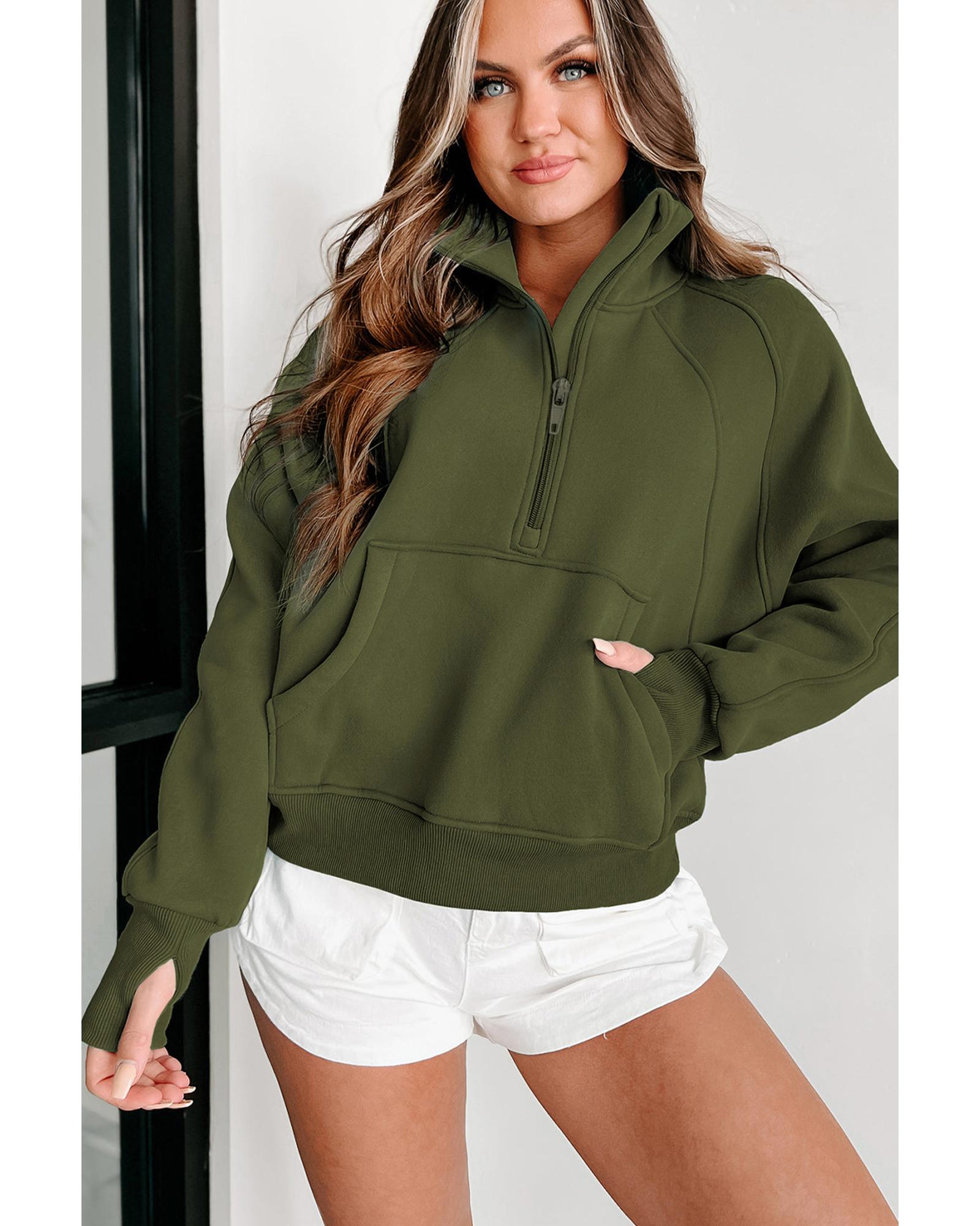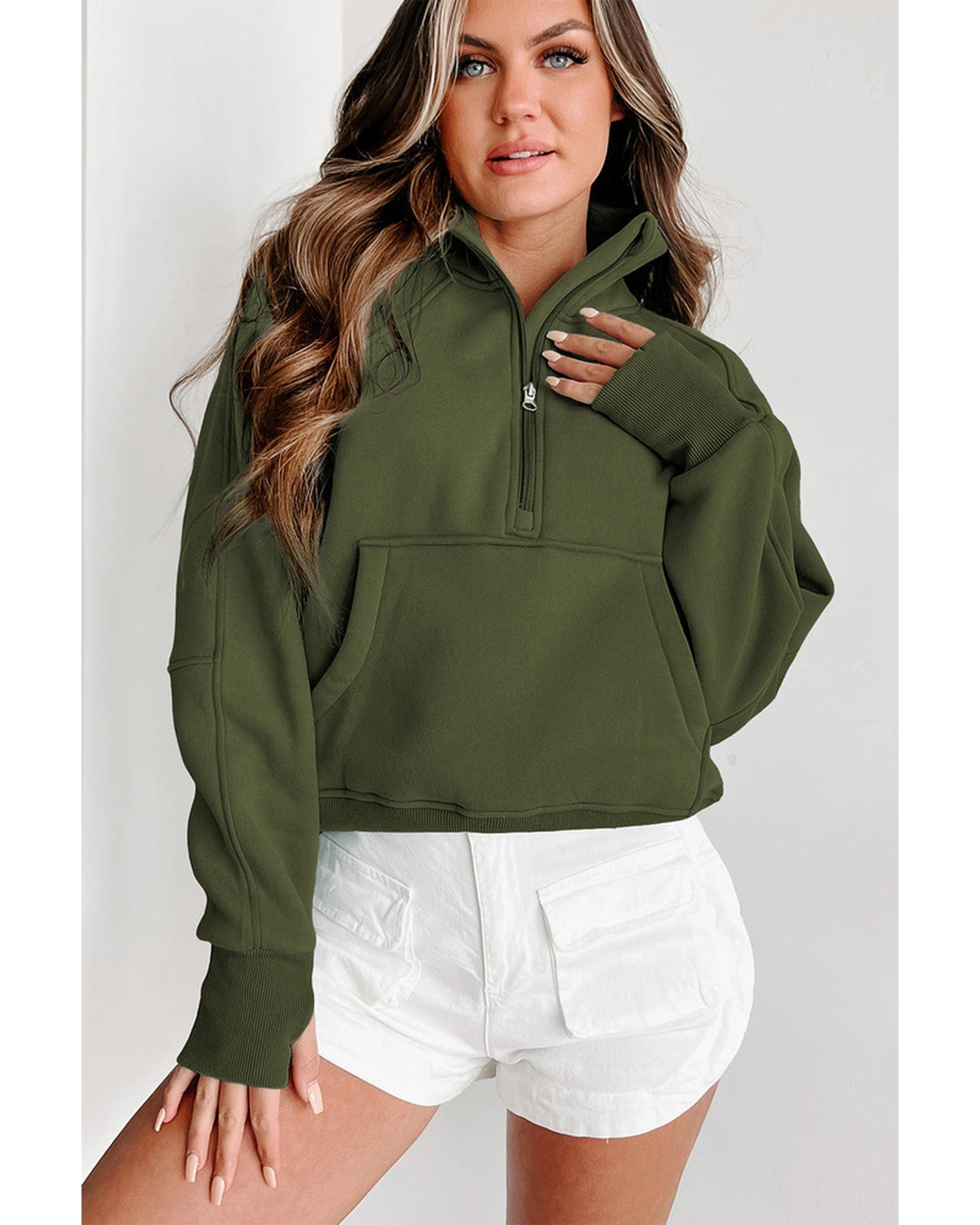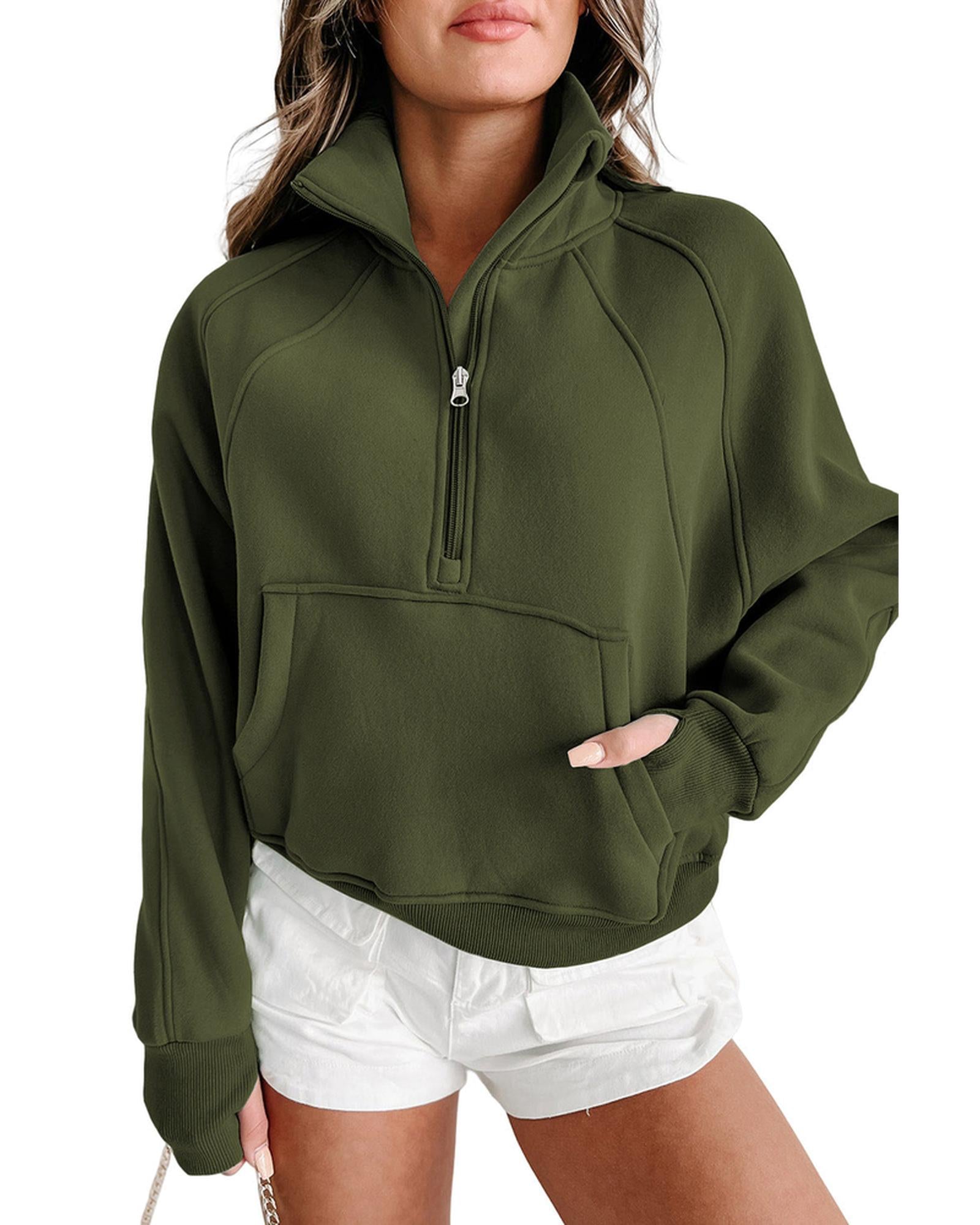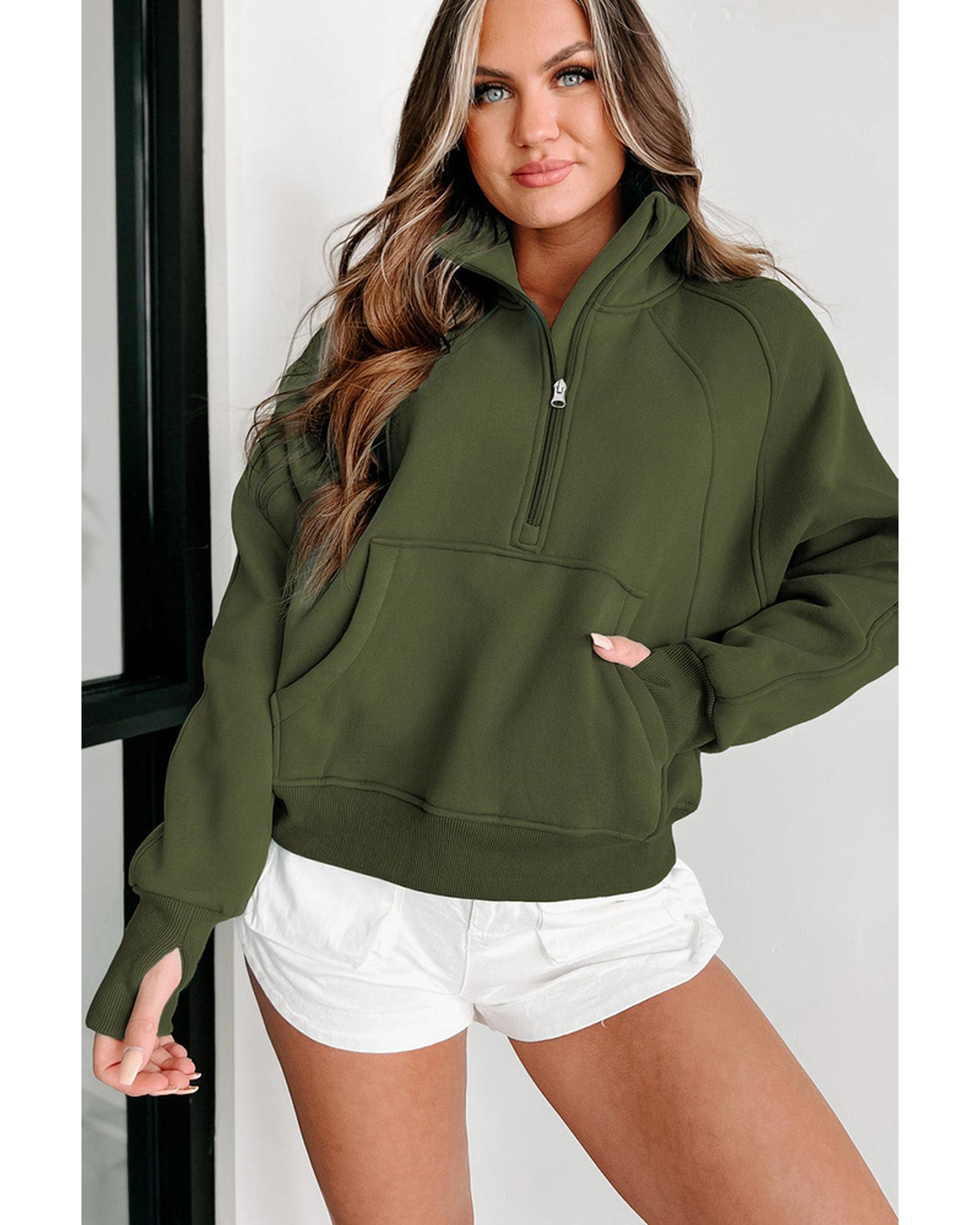 Azura Exchange Ribbed Thumbhole Sleeve Sweatshirt with Stand Collar and Zip Closure - XL