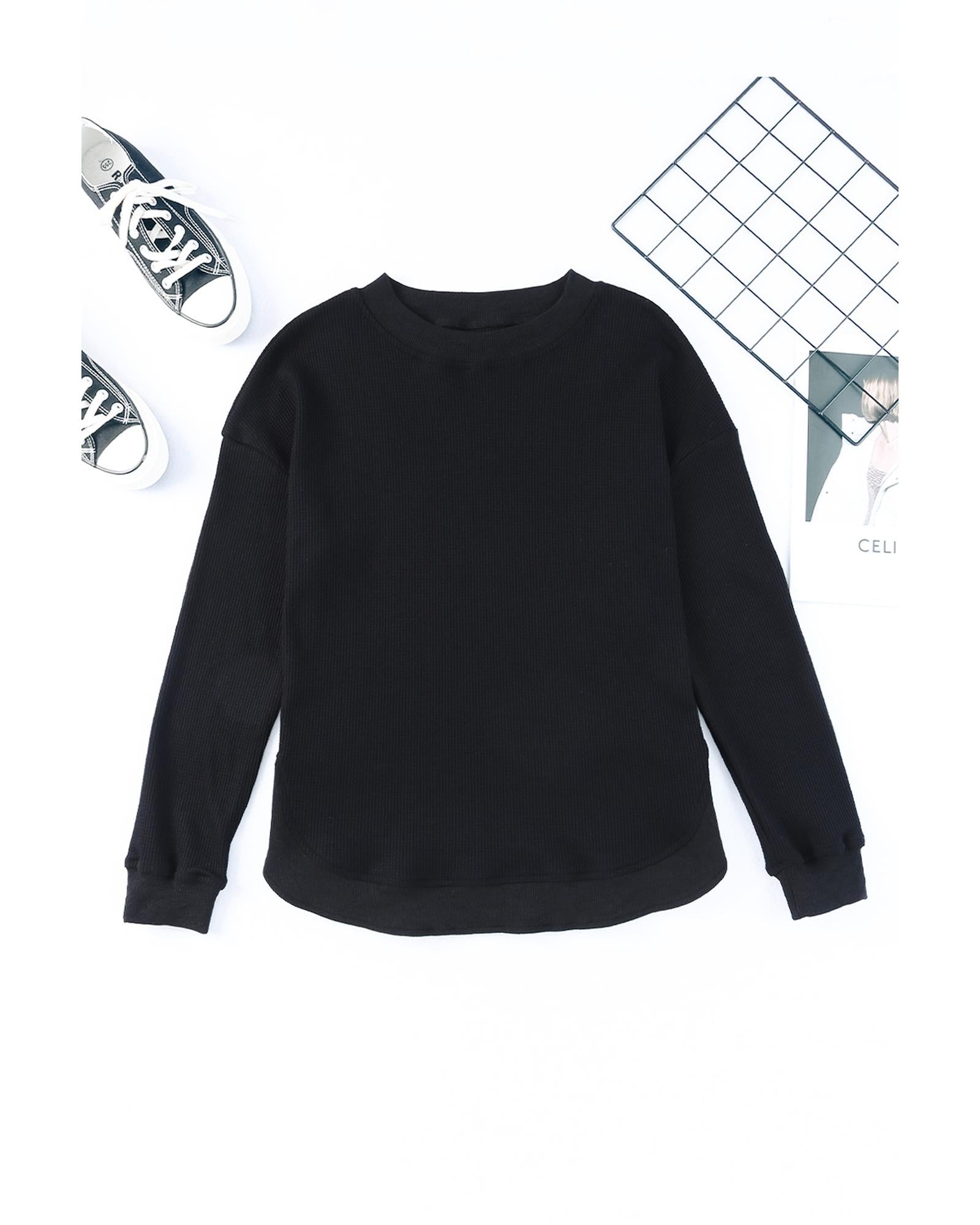 Azura Exchange Ribbed Trim Waffle Knit Top - M