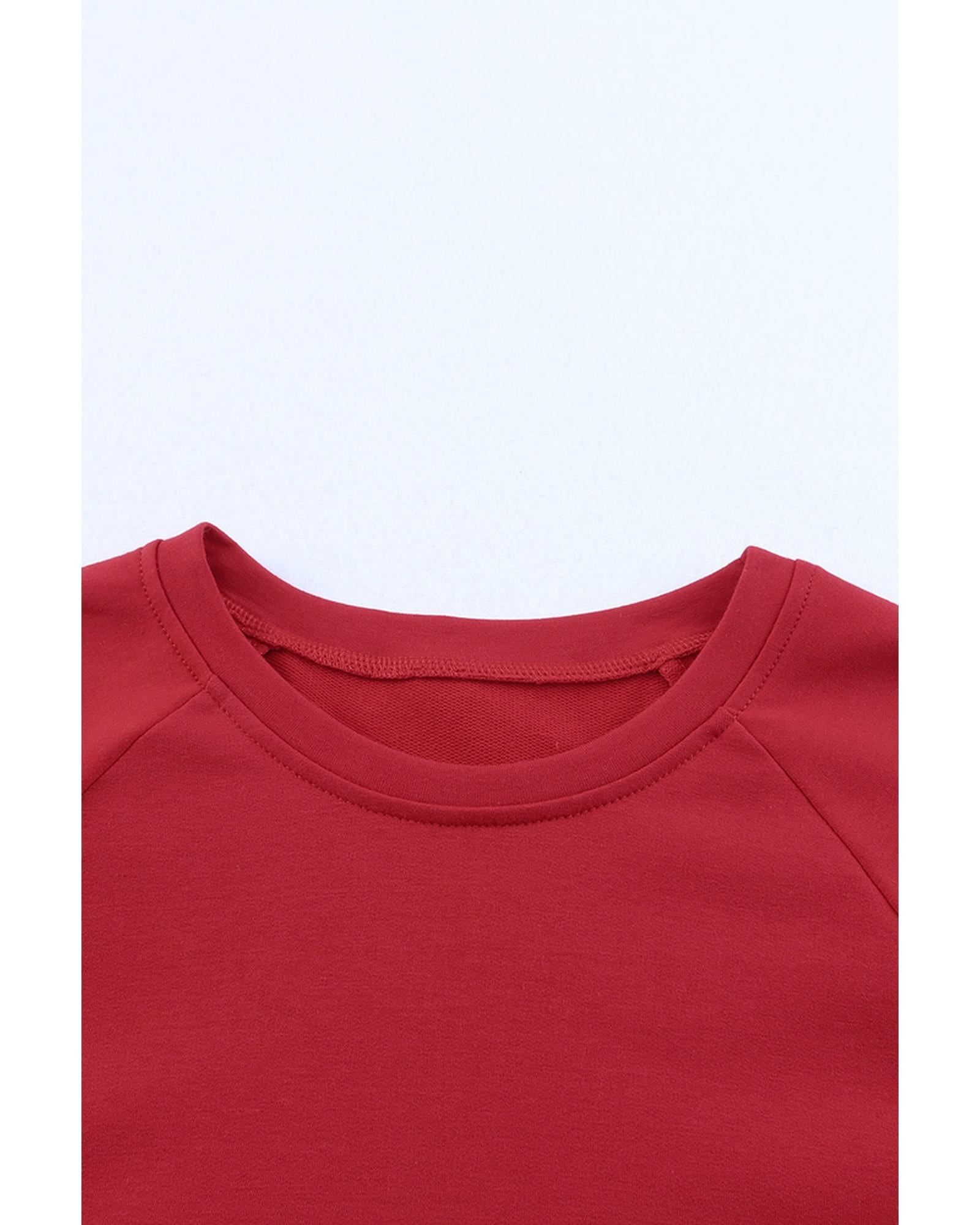 - Solid Round Neck Raglan Sleeve Sweatshirt