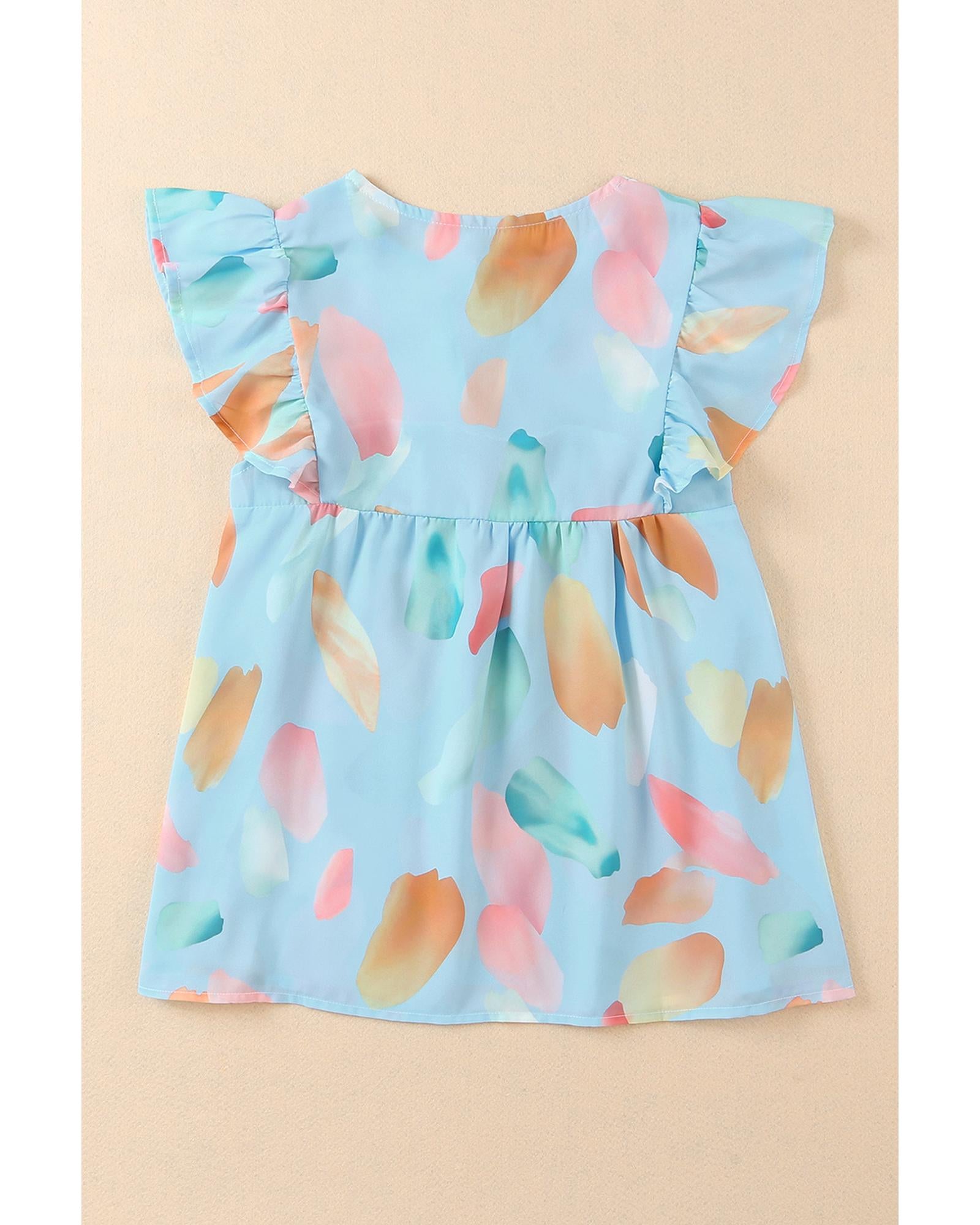 - Womens Splotches Pattern Ruffled Cap Sleeve Shift Top