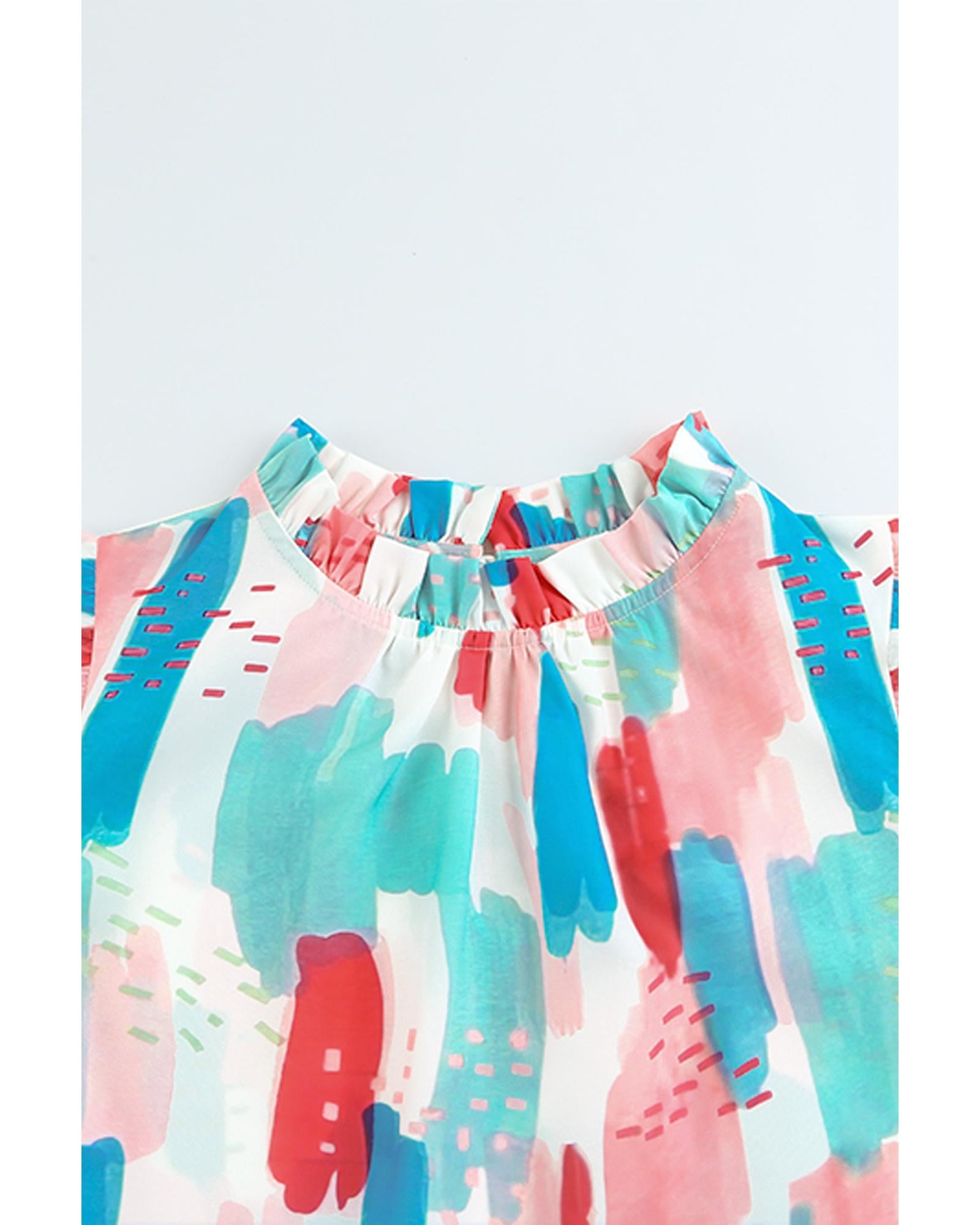 - Stylish and trendy Color Block Ruffled Mock Neck Ruffled Top