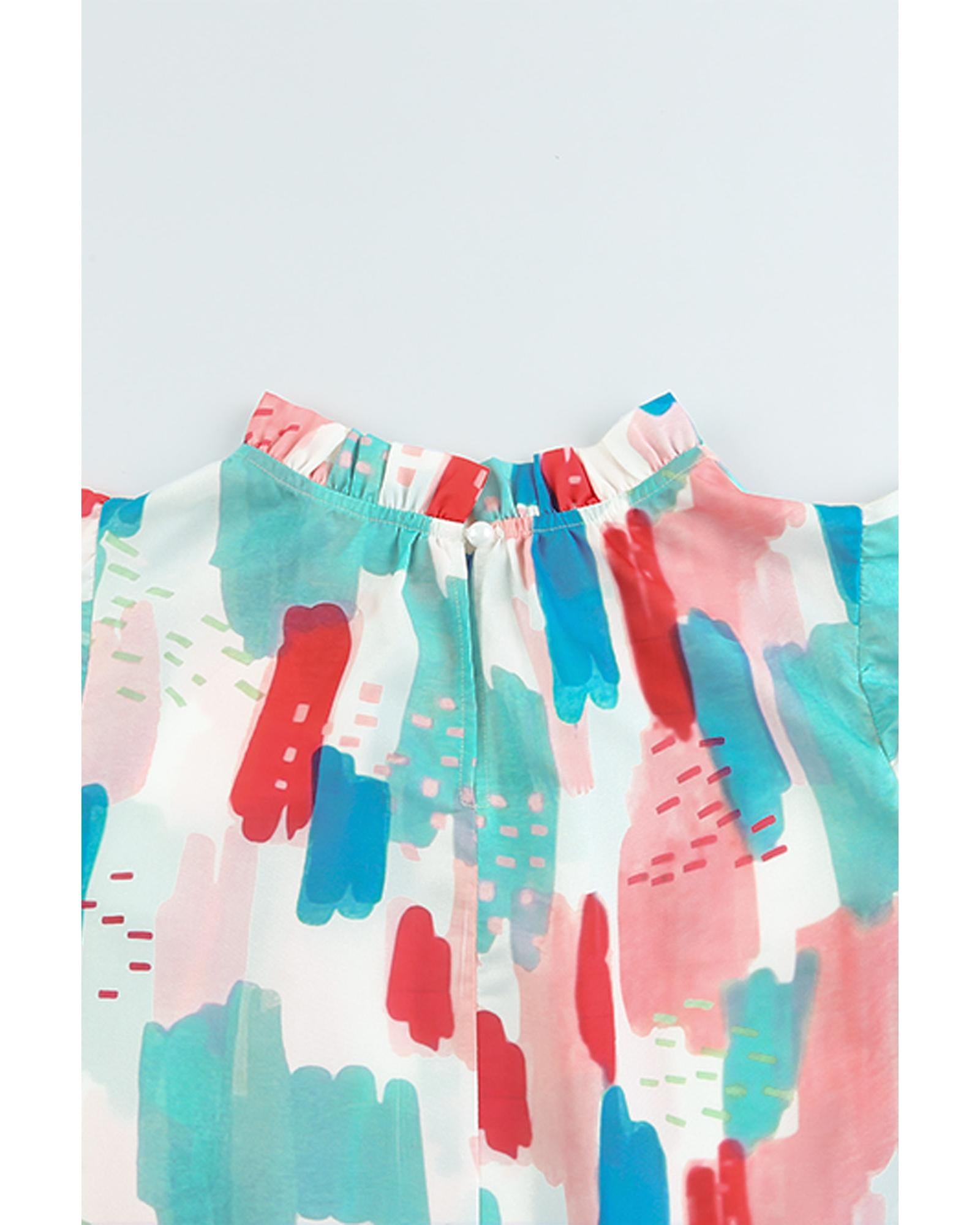 - Stylish and trendy Color Block Ruffled Mock Neck Ruffled Top