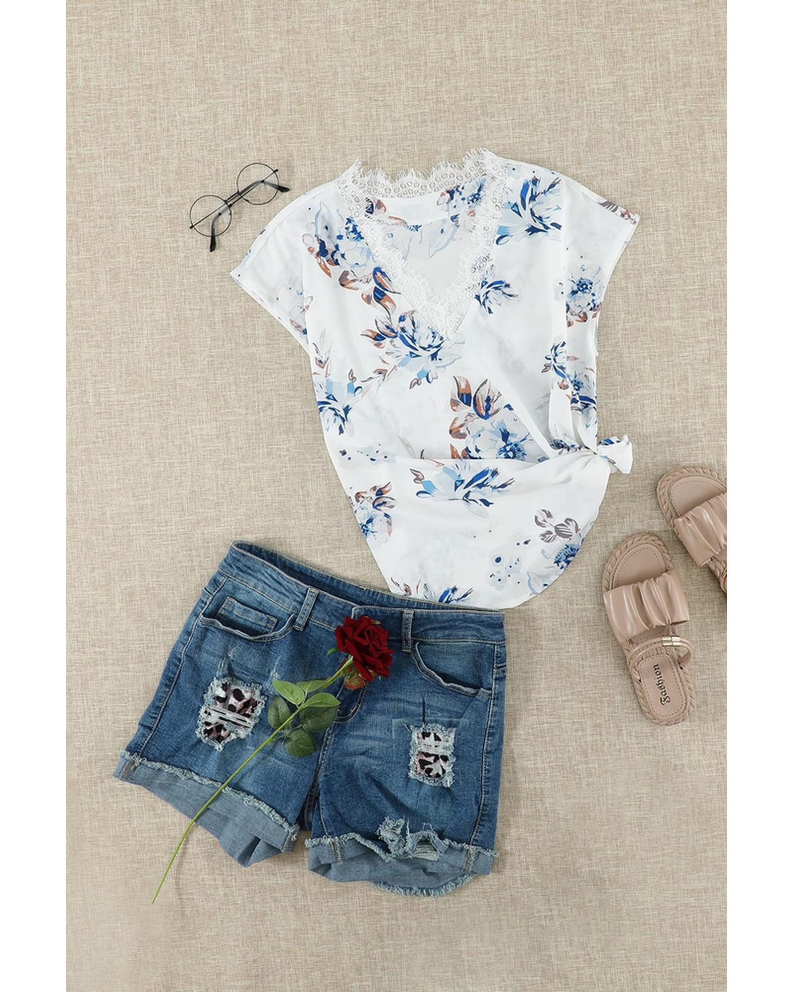 Azura Exchange Scalloped V Neck Short Sleeves Top - L