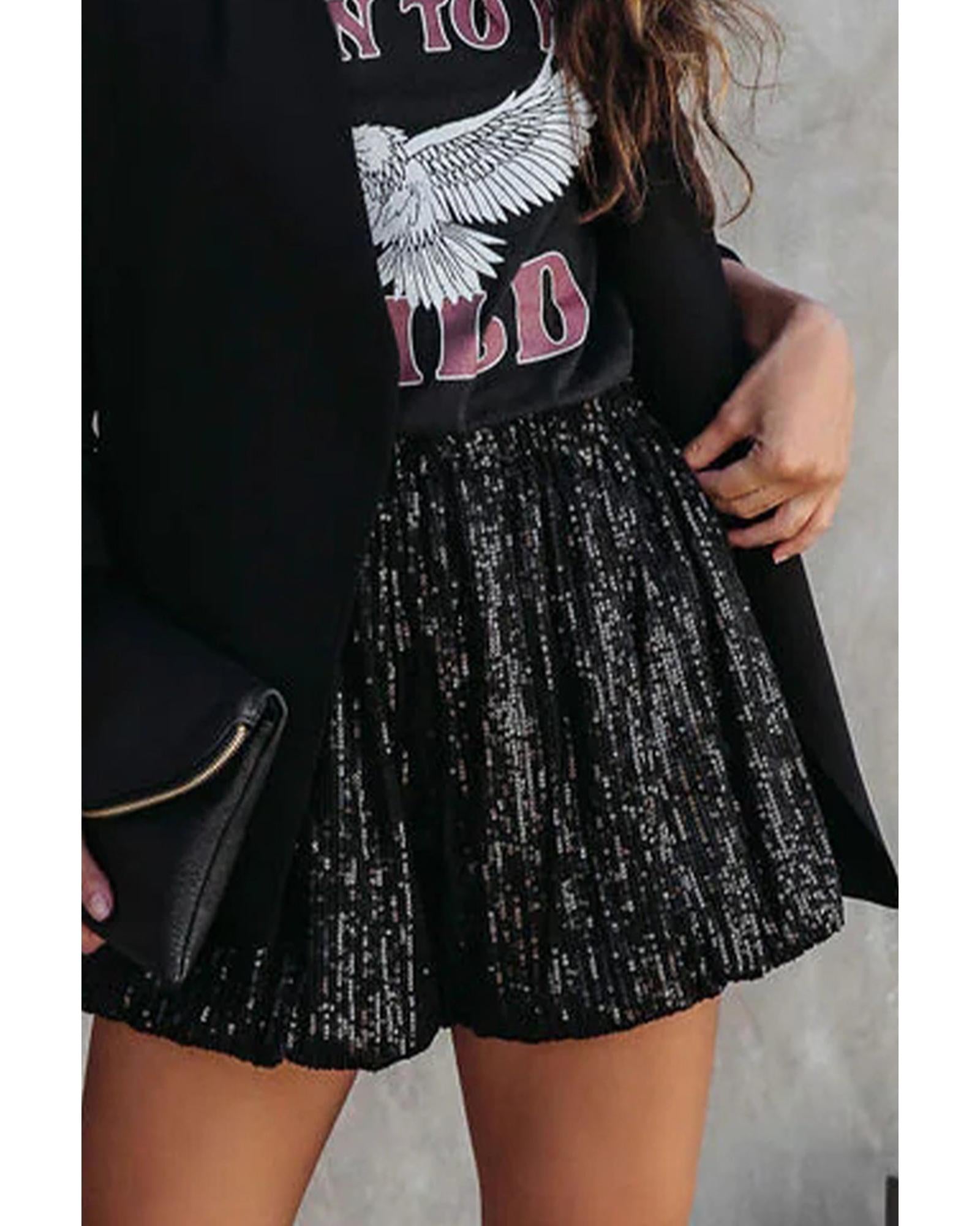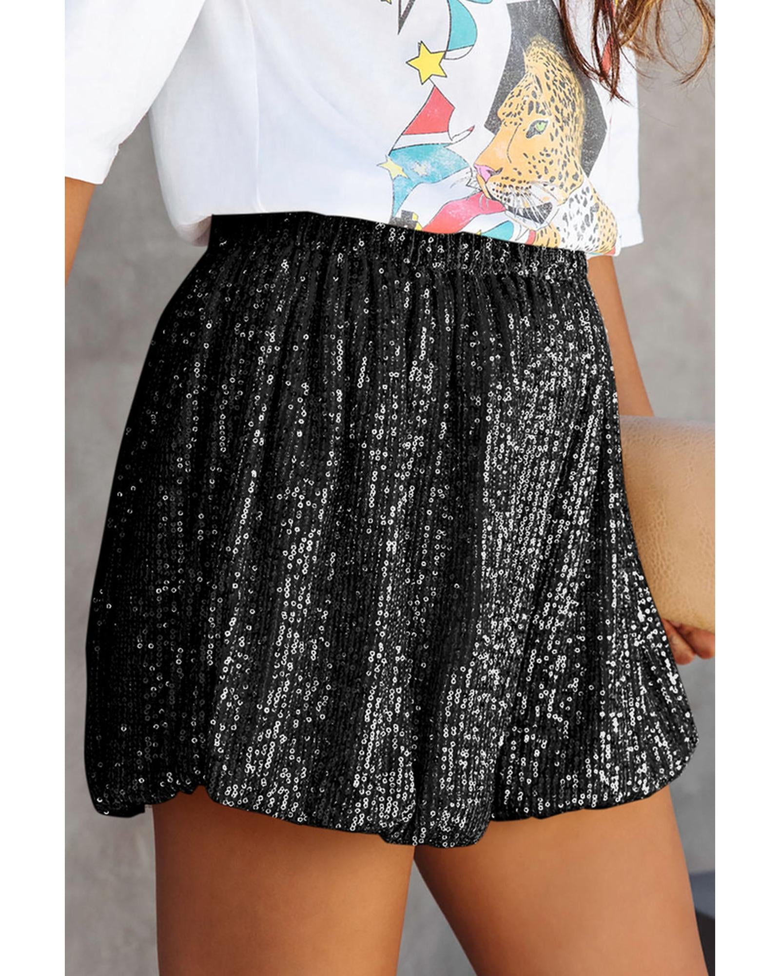 - Trendy and glamorous Sequin Straight Leg High Waist Casual Shorts