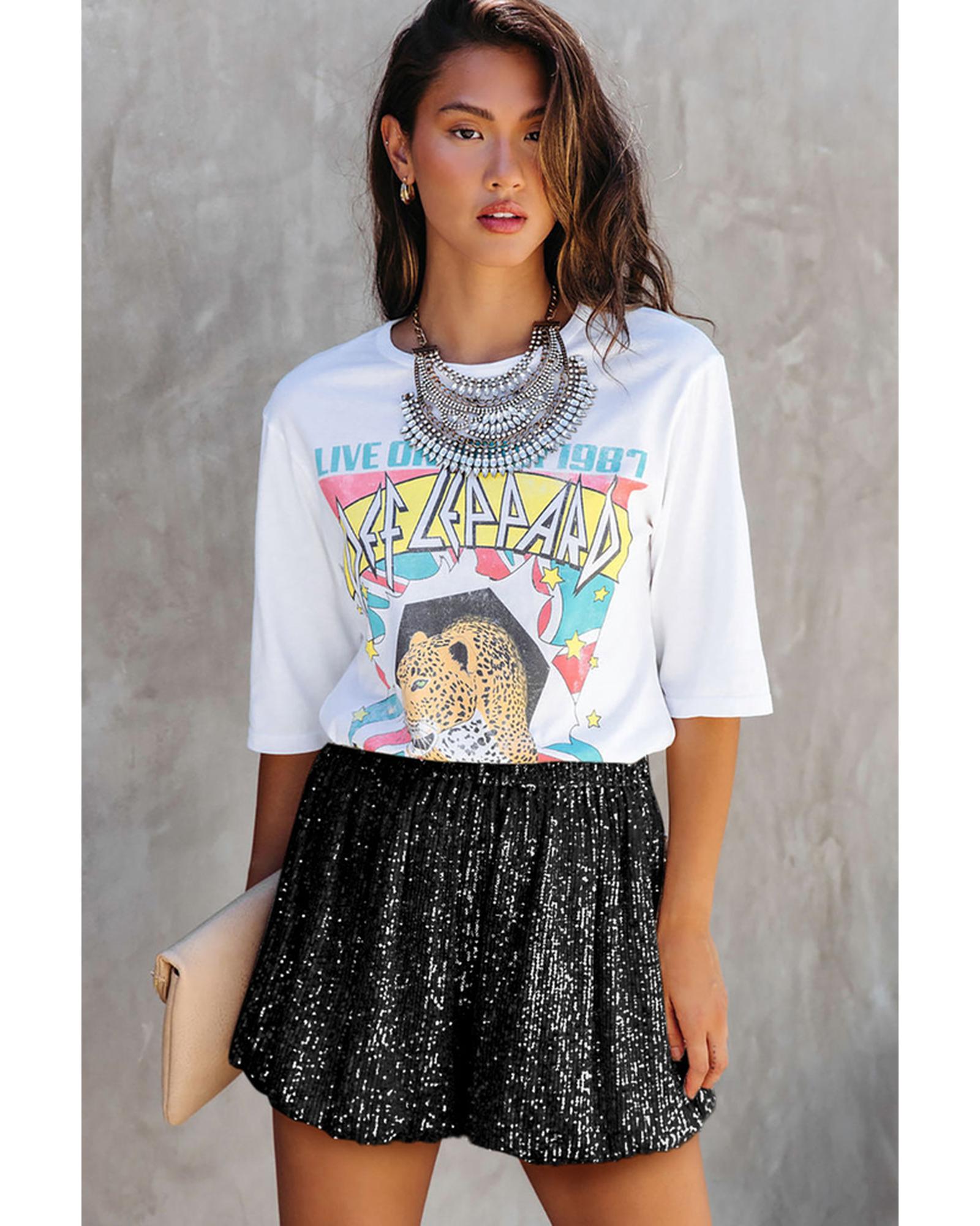 Azura Exchange Sequin High Waist Casual Shorts - XL