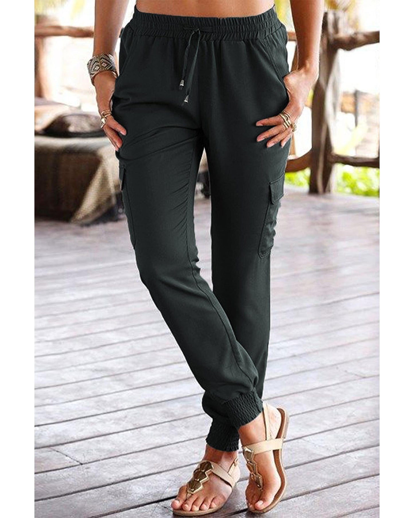 - High waist with drawstring