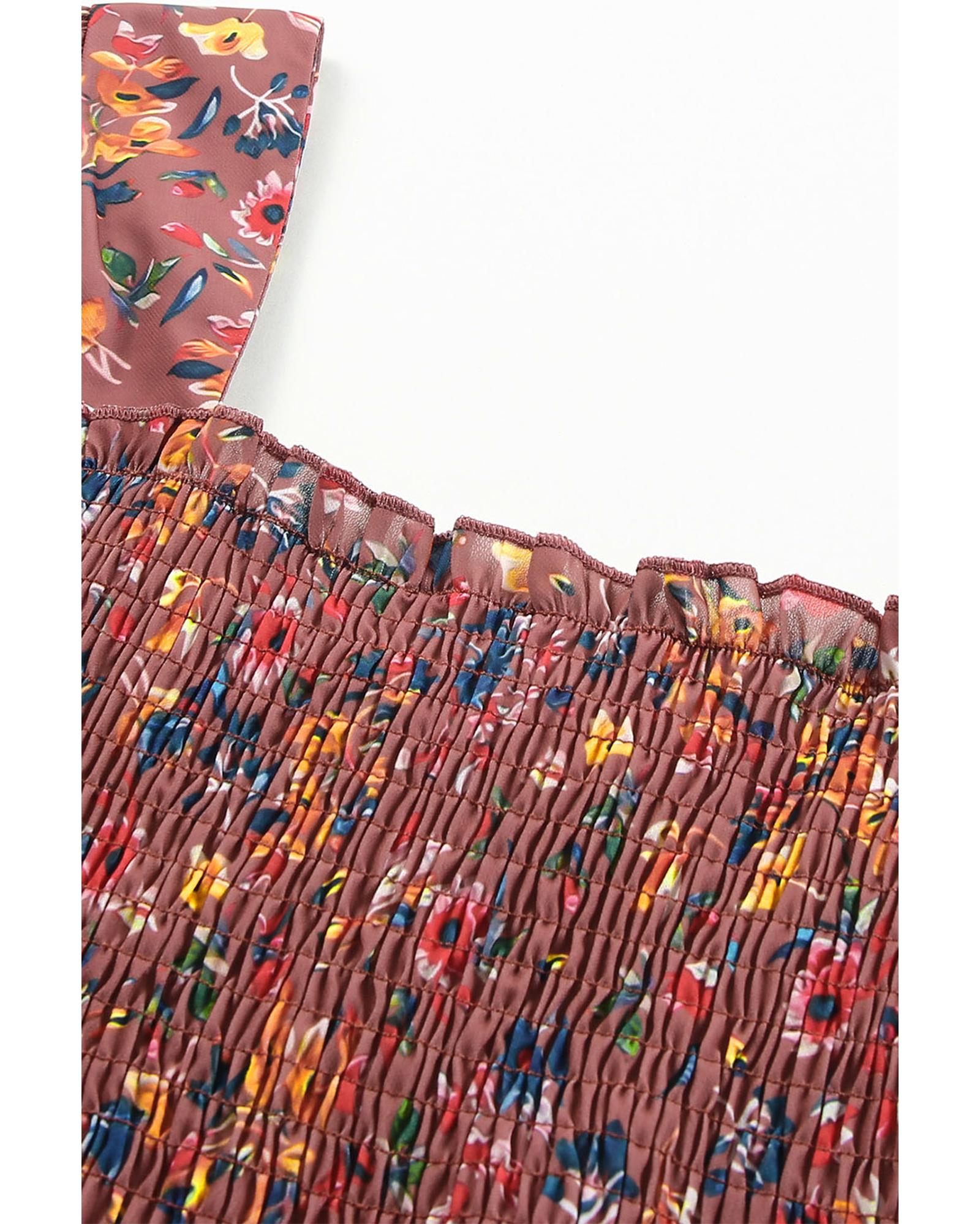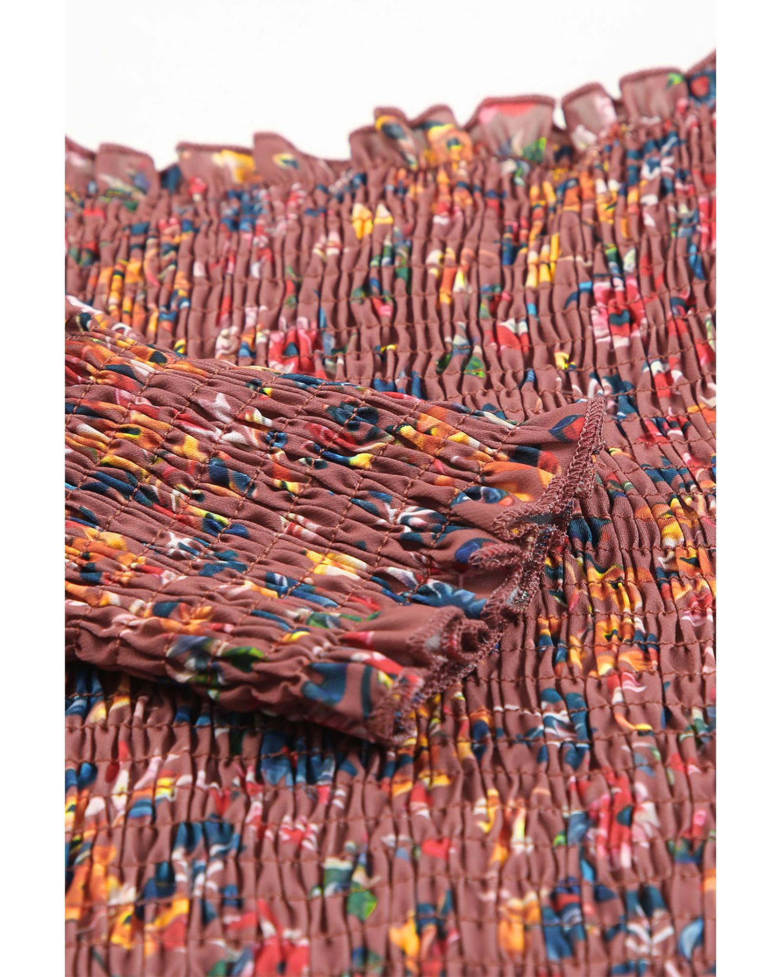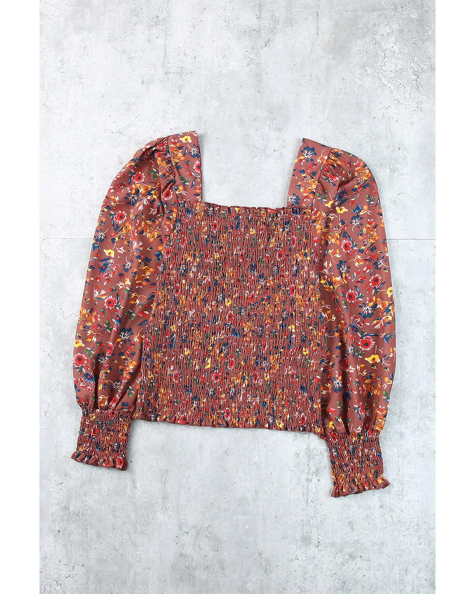 Azura Exchange Smocked Floral Print Long Sleeve Top - S