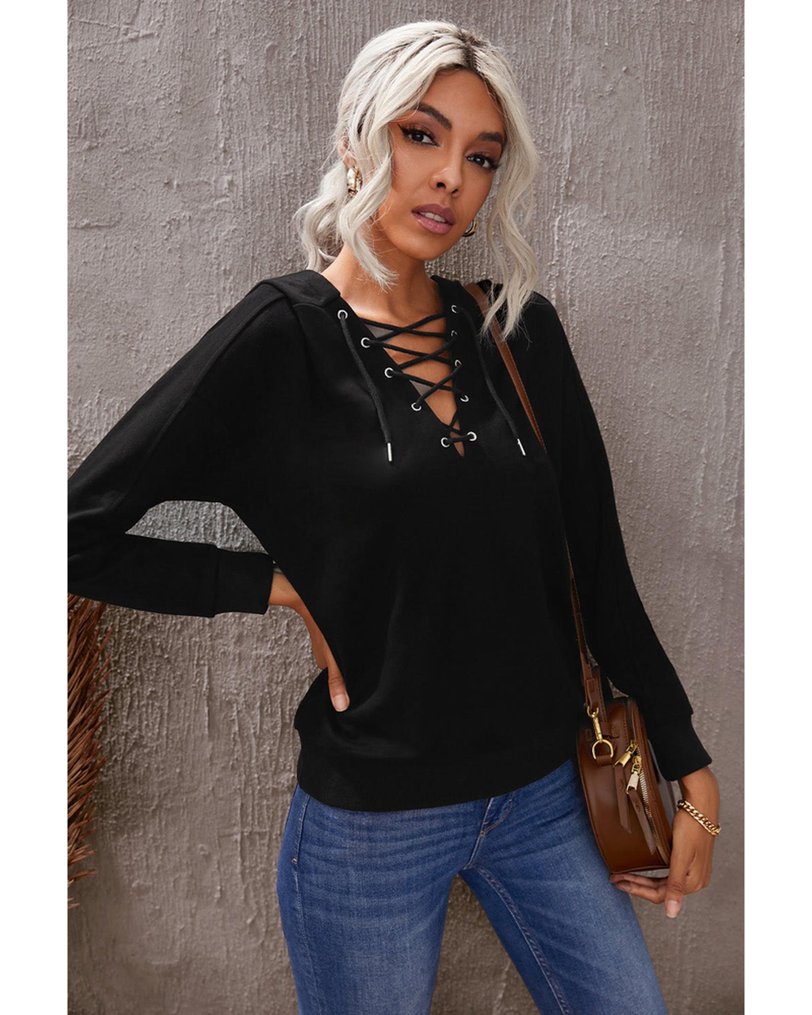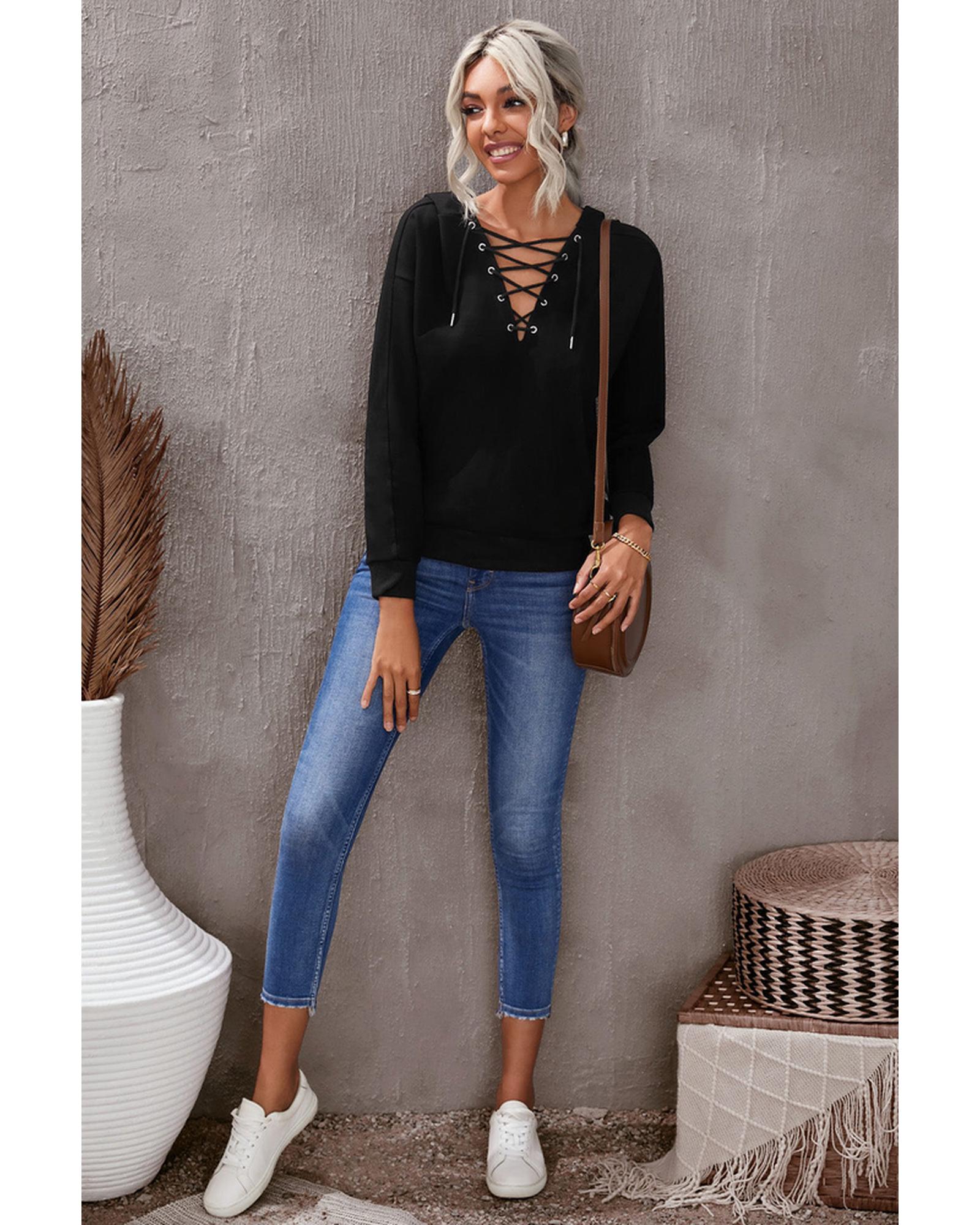 Azura Exchange Solid Color Lace-up Hoodie - 2XL