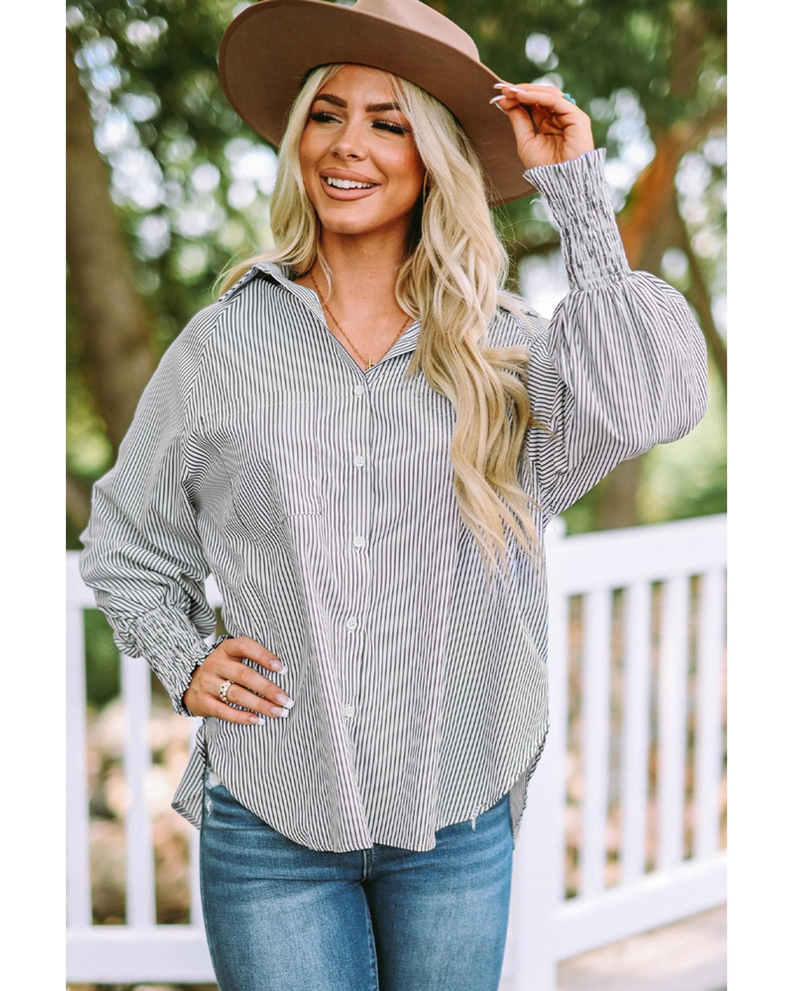 Azura Exchange Striped Boyfriend Shirt with Smocked Cuffs and Pocket - S