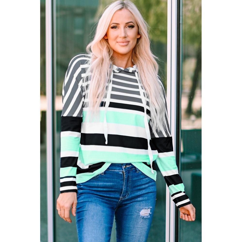 - Style: Striped Drawstring Long Sleeve Hoodie