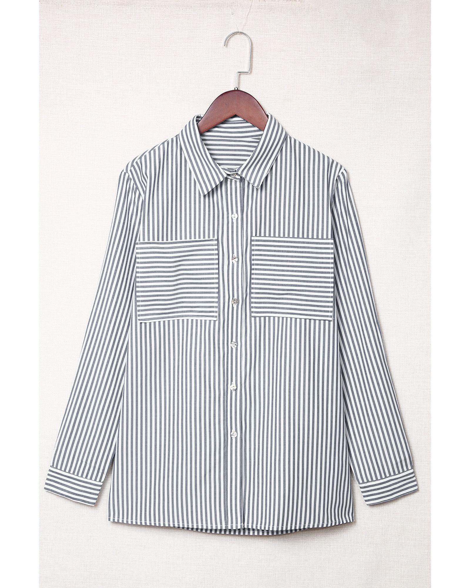 Azura Exchange Striped Long Sleeve Shirt with Pocketed Buttons - S
