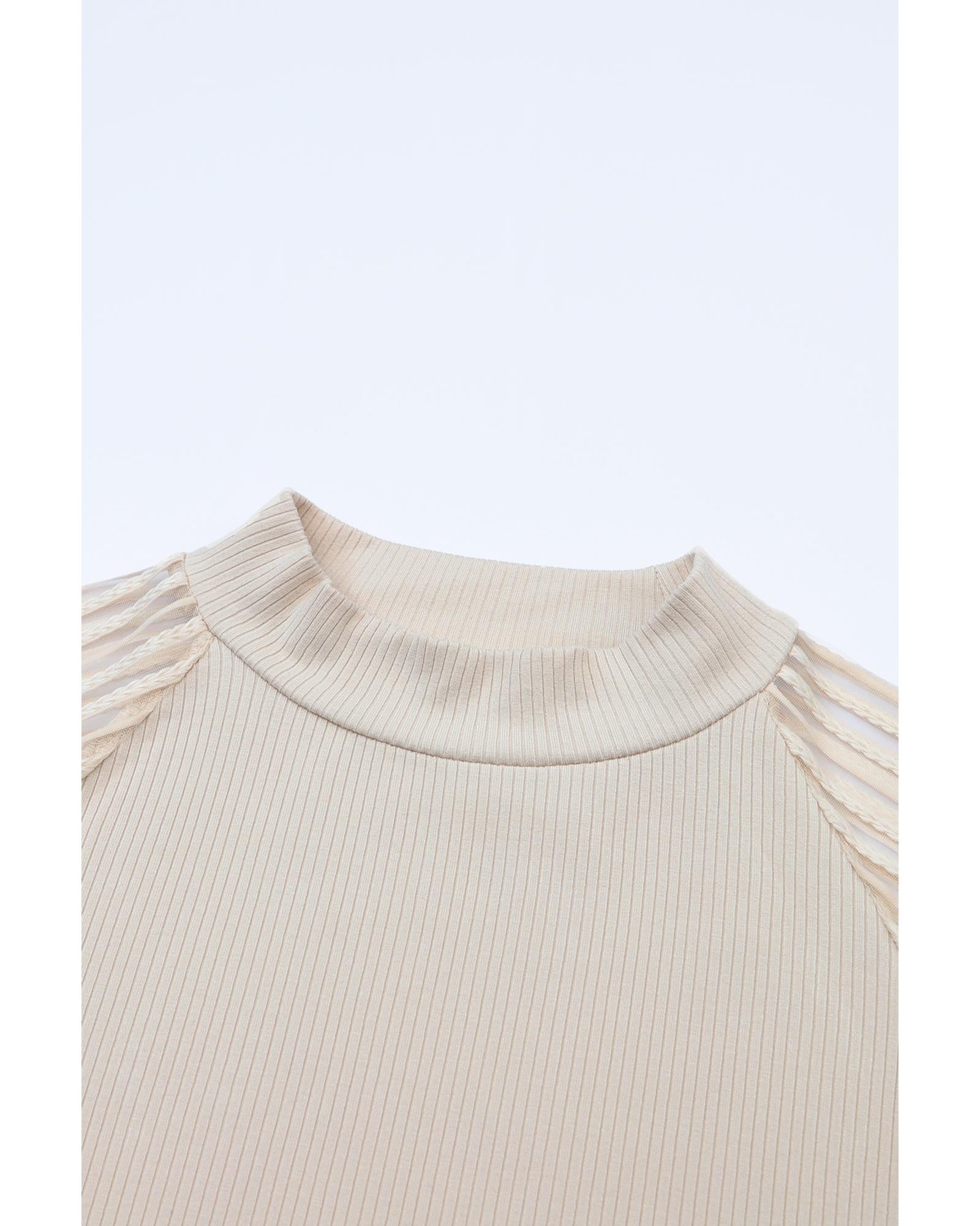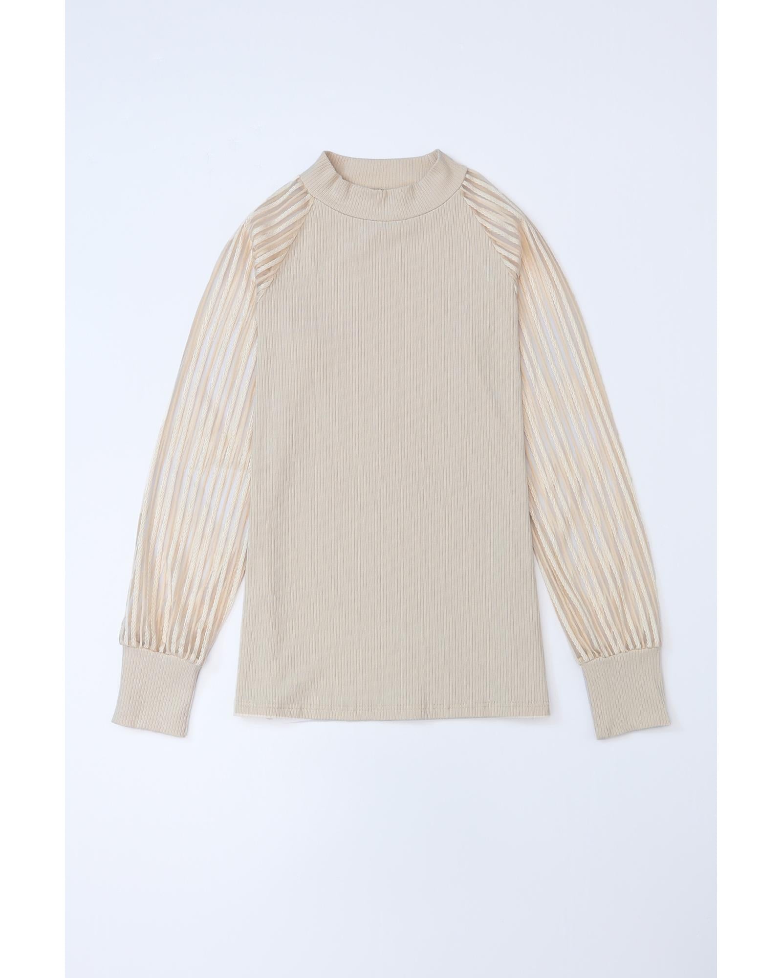 Azura Exchange Striped Mesh Long Sleeve Ribbed Top - 2XL