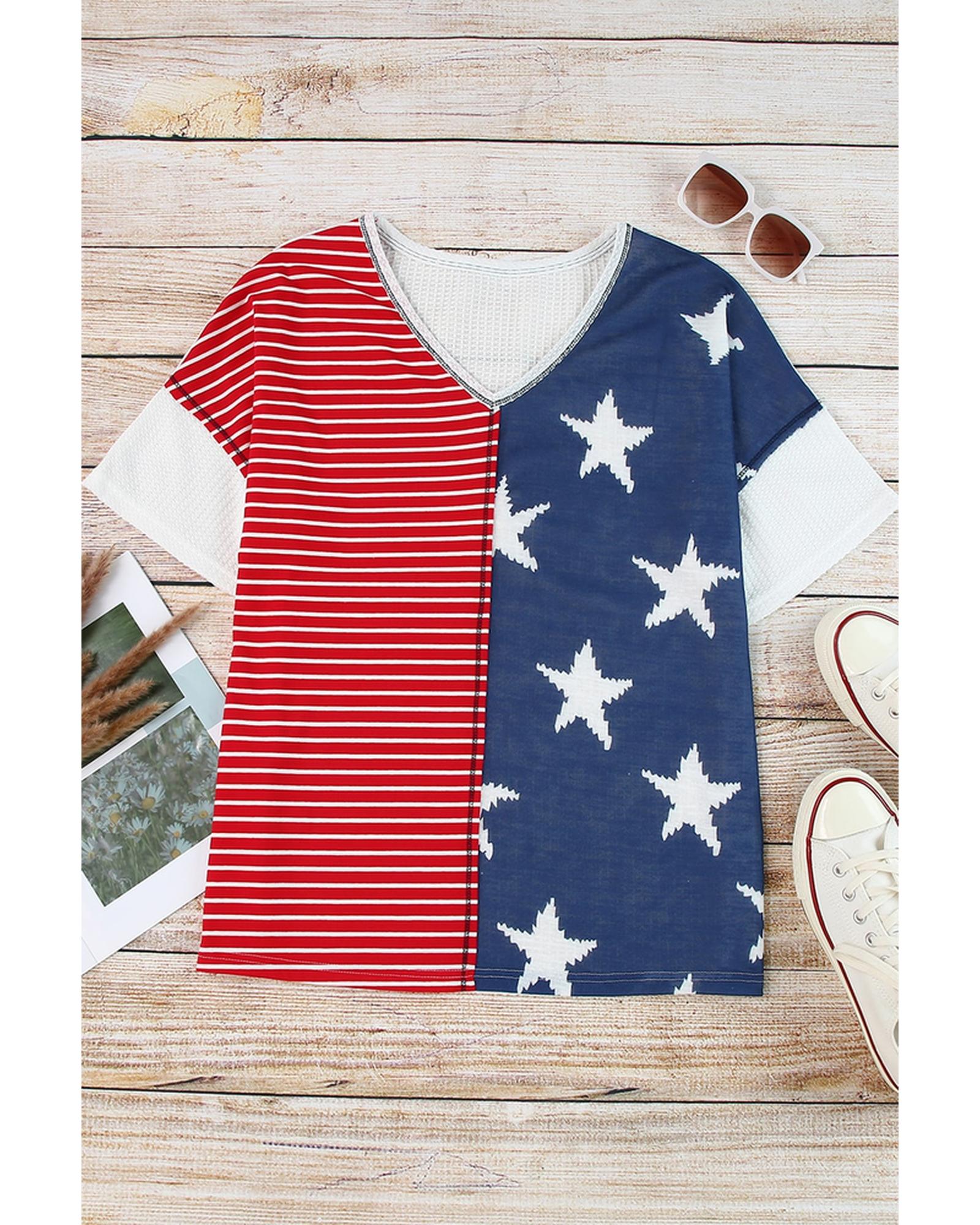 Azura Exchange Striped Star Print Knit Short Sleeve Top - M