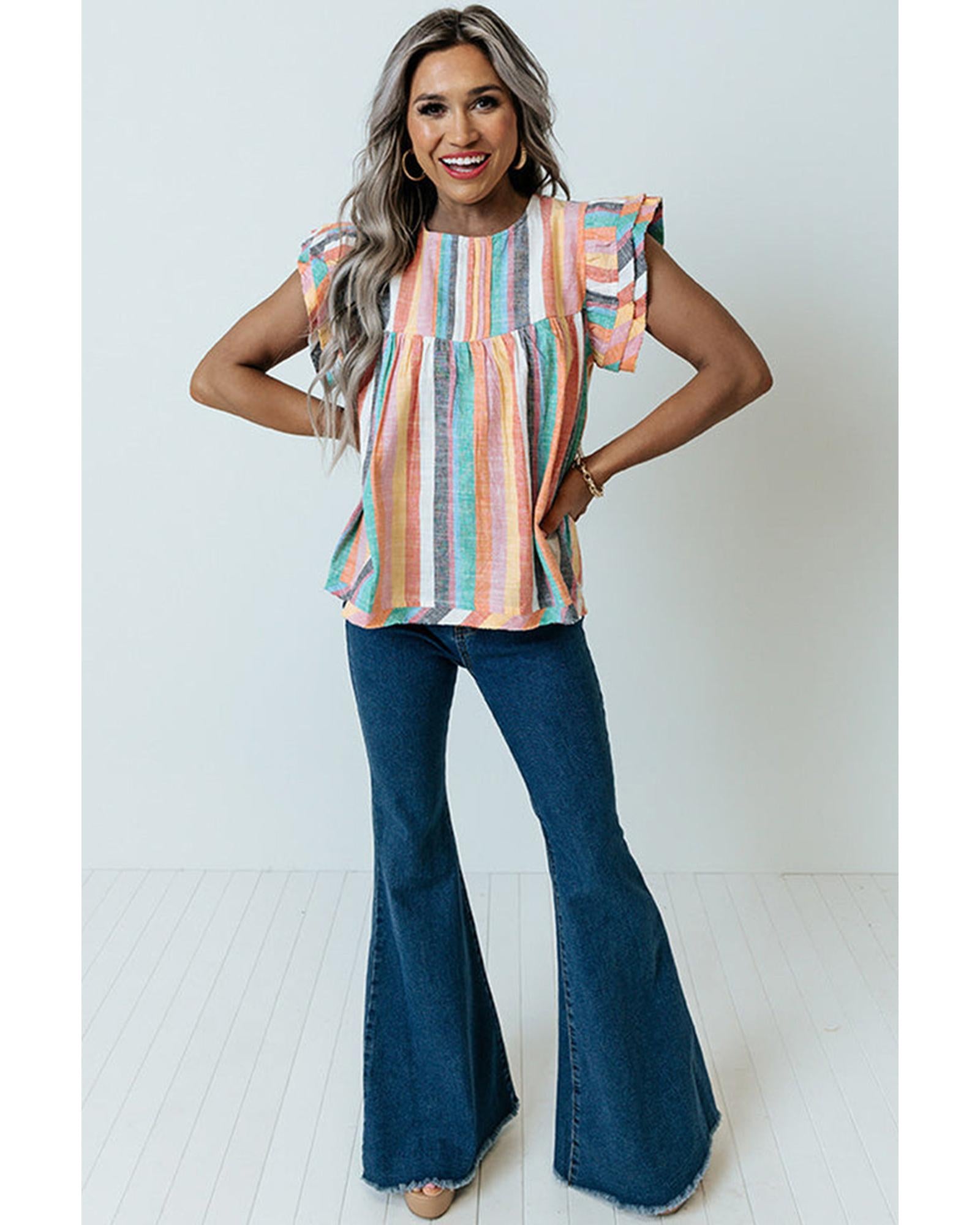Azura Exchange Striped Tiered Ruffle Cap Sleeve Top - S
