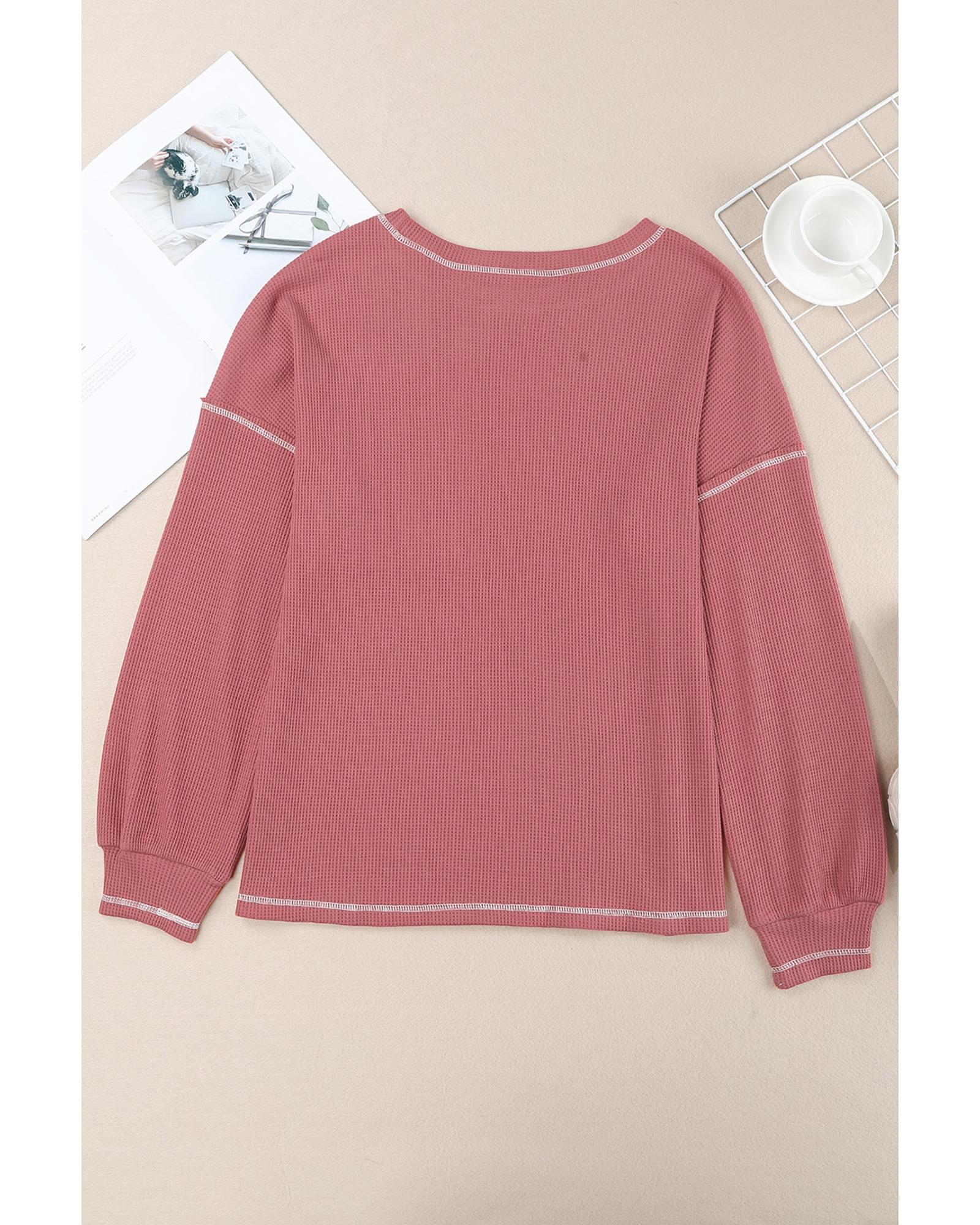 Azura Exchange Stylish Contrast Stitching Waffle Knit Pullover - S