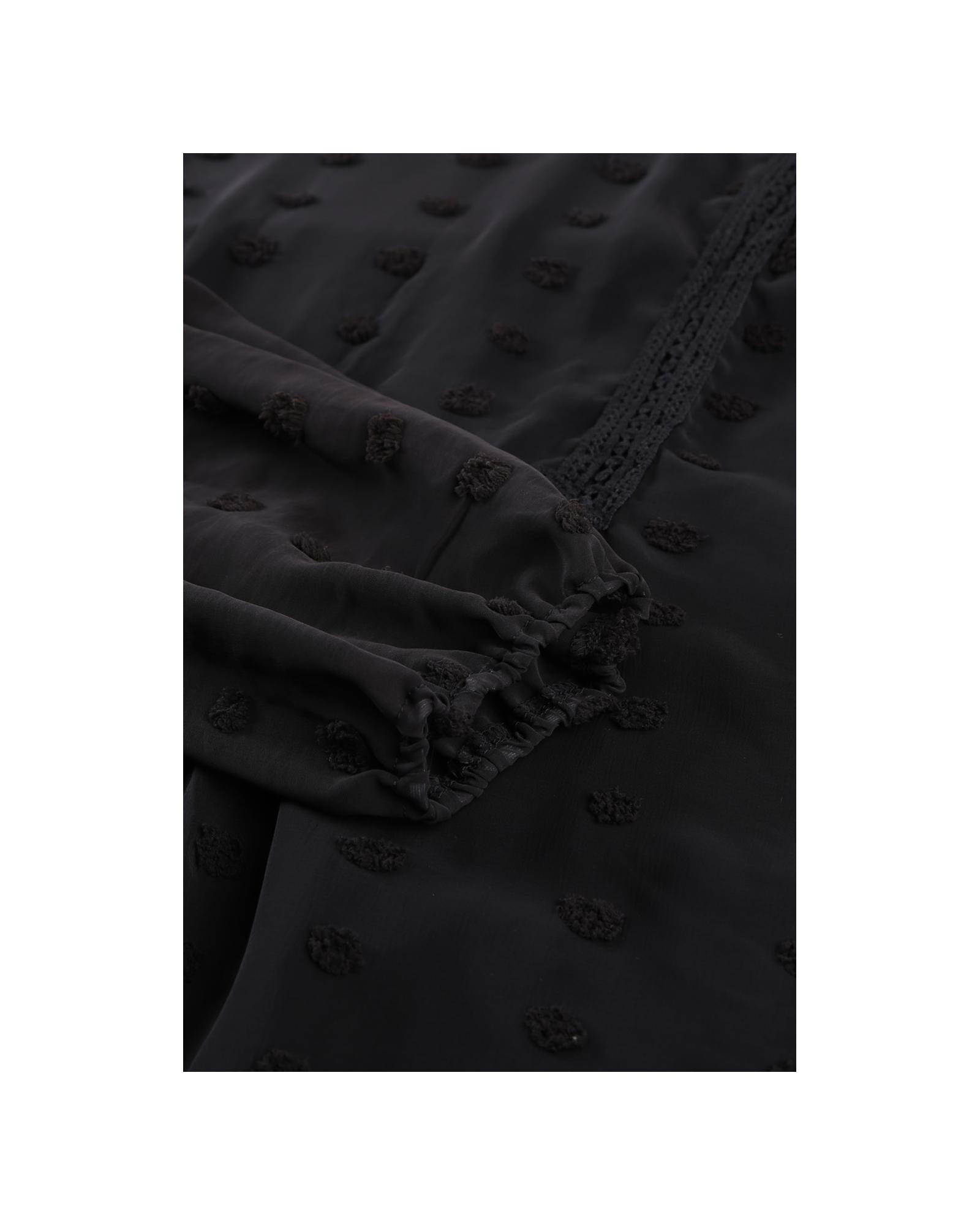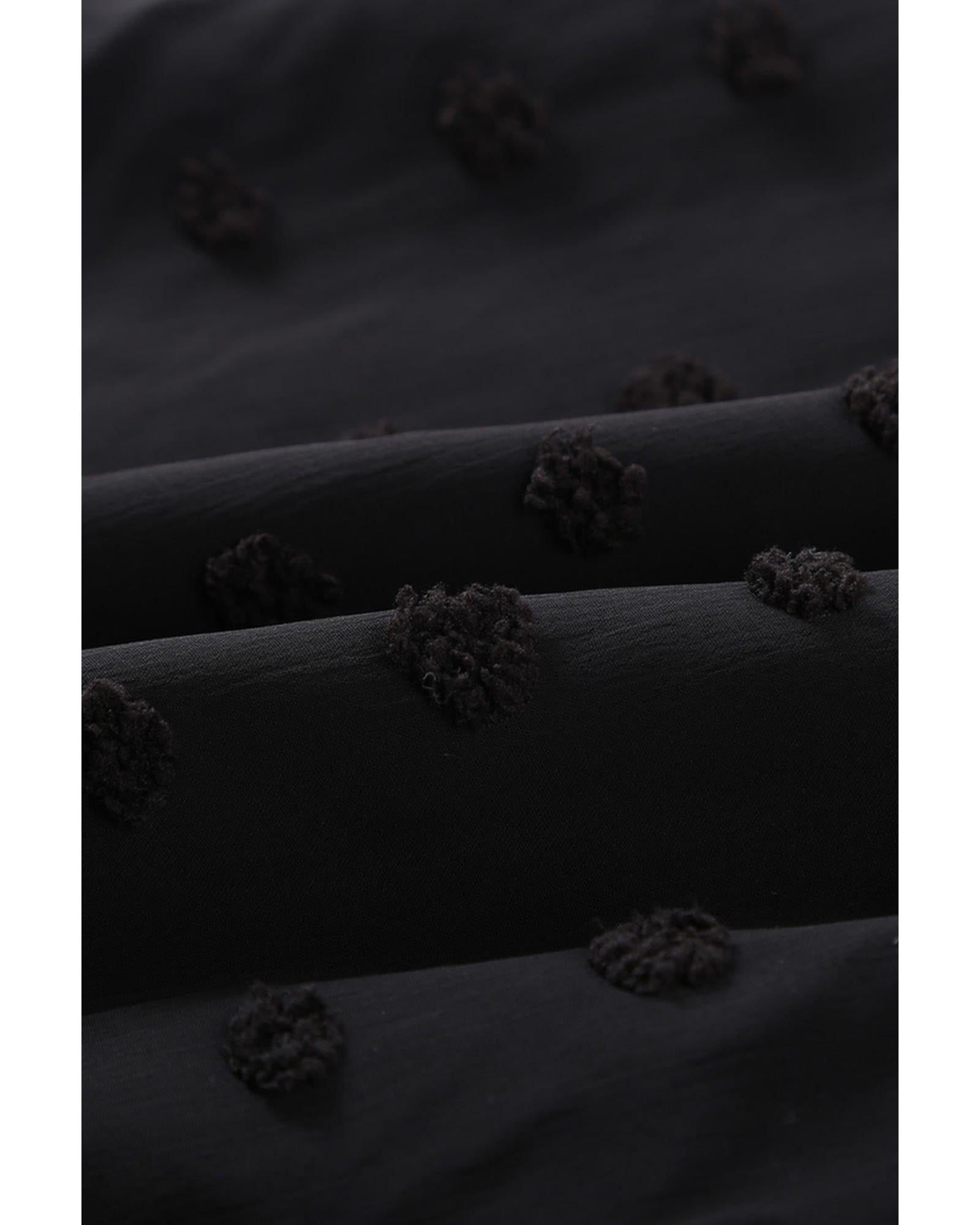 - Swiss Dot Split Neck Ruffle Babydoll Blouse