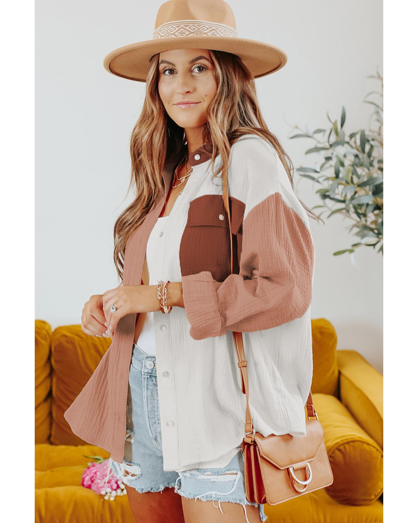 Azura Exchange Textured Color Block Long Sleeve Shirt with Pocket - M