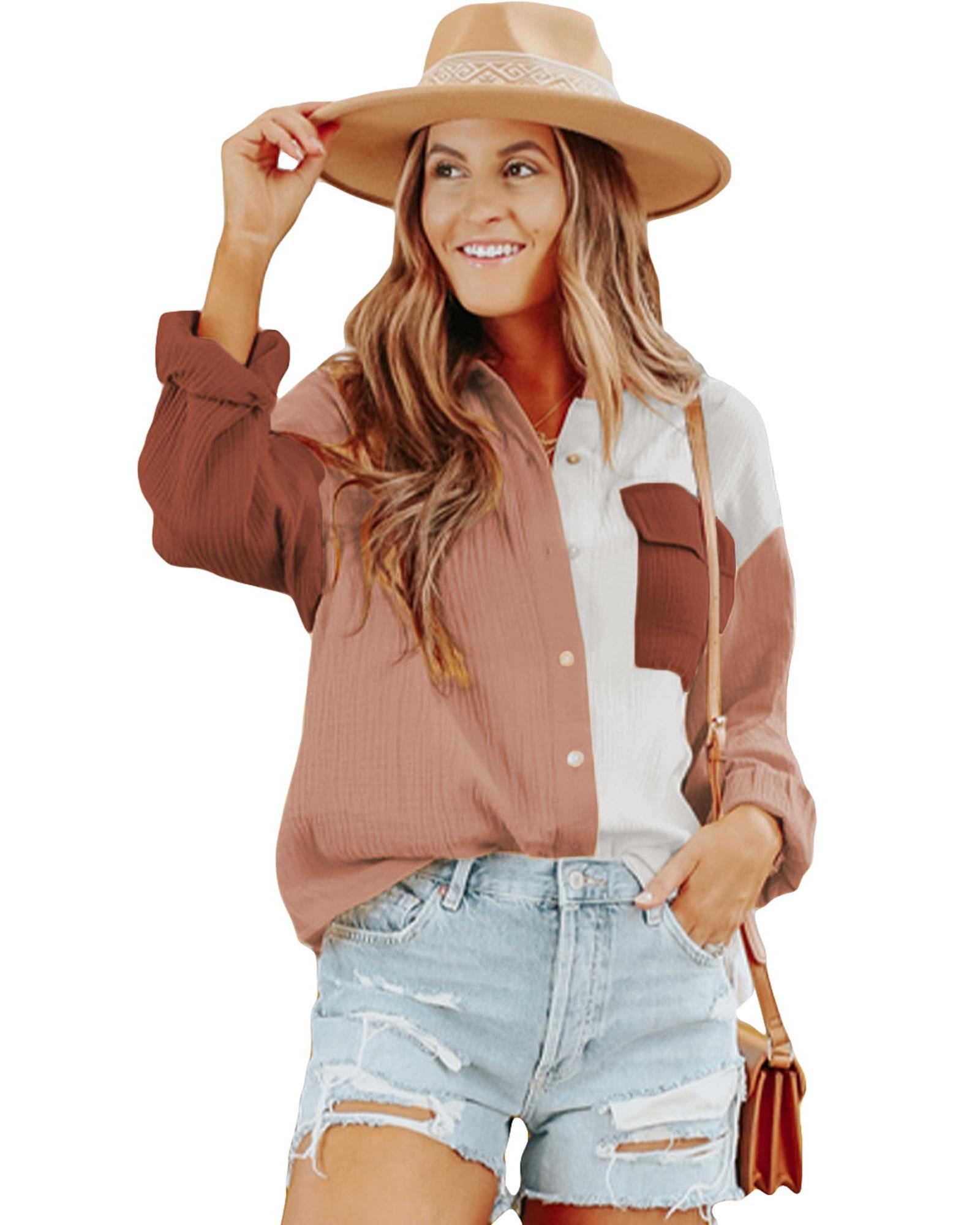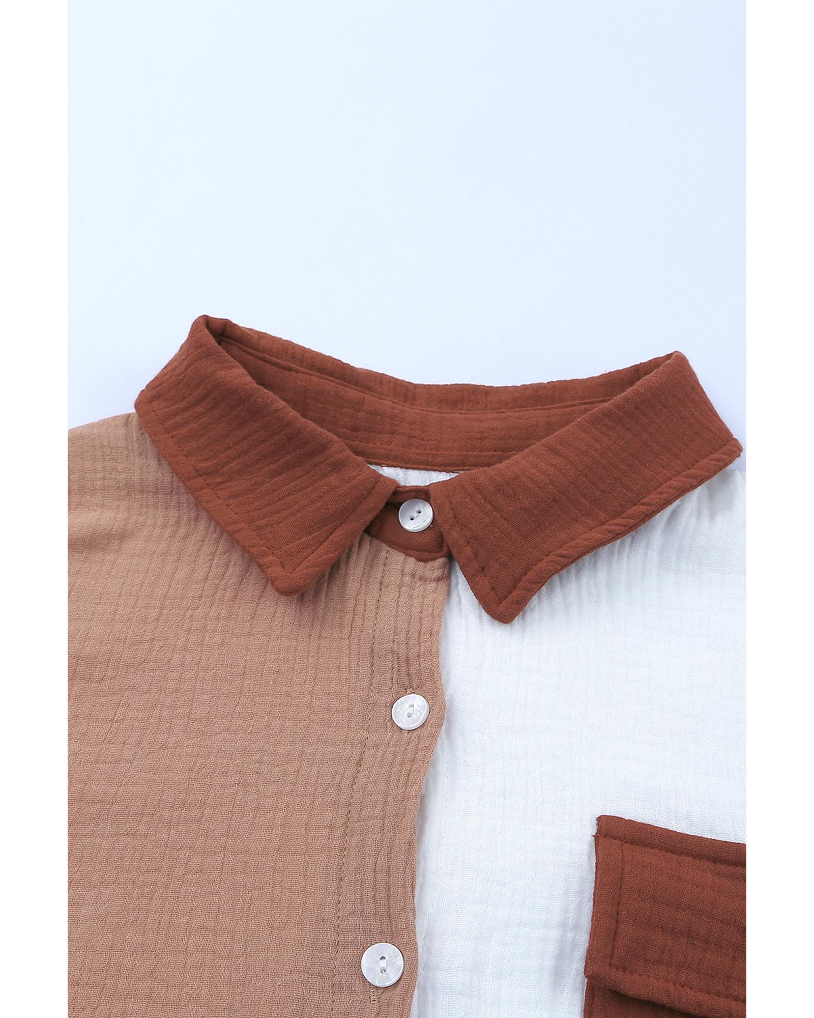 Azura Exchange Textured Color Block Long Sleeve Shirt with Pocket - S