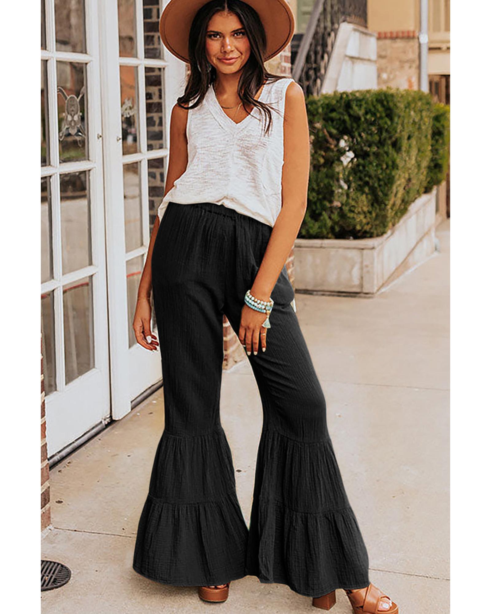 Azura Exchange Textured Ruffled Bell Bottom Pants - L