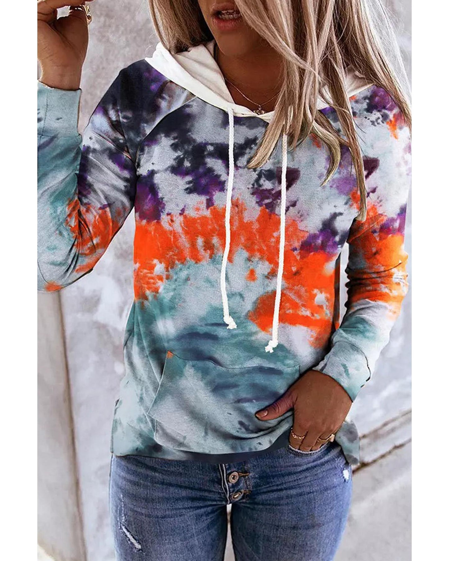 - Trendy and stylish Multicolor Tie Dye Drawstring Kangaroo Pocket Hoodie