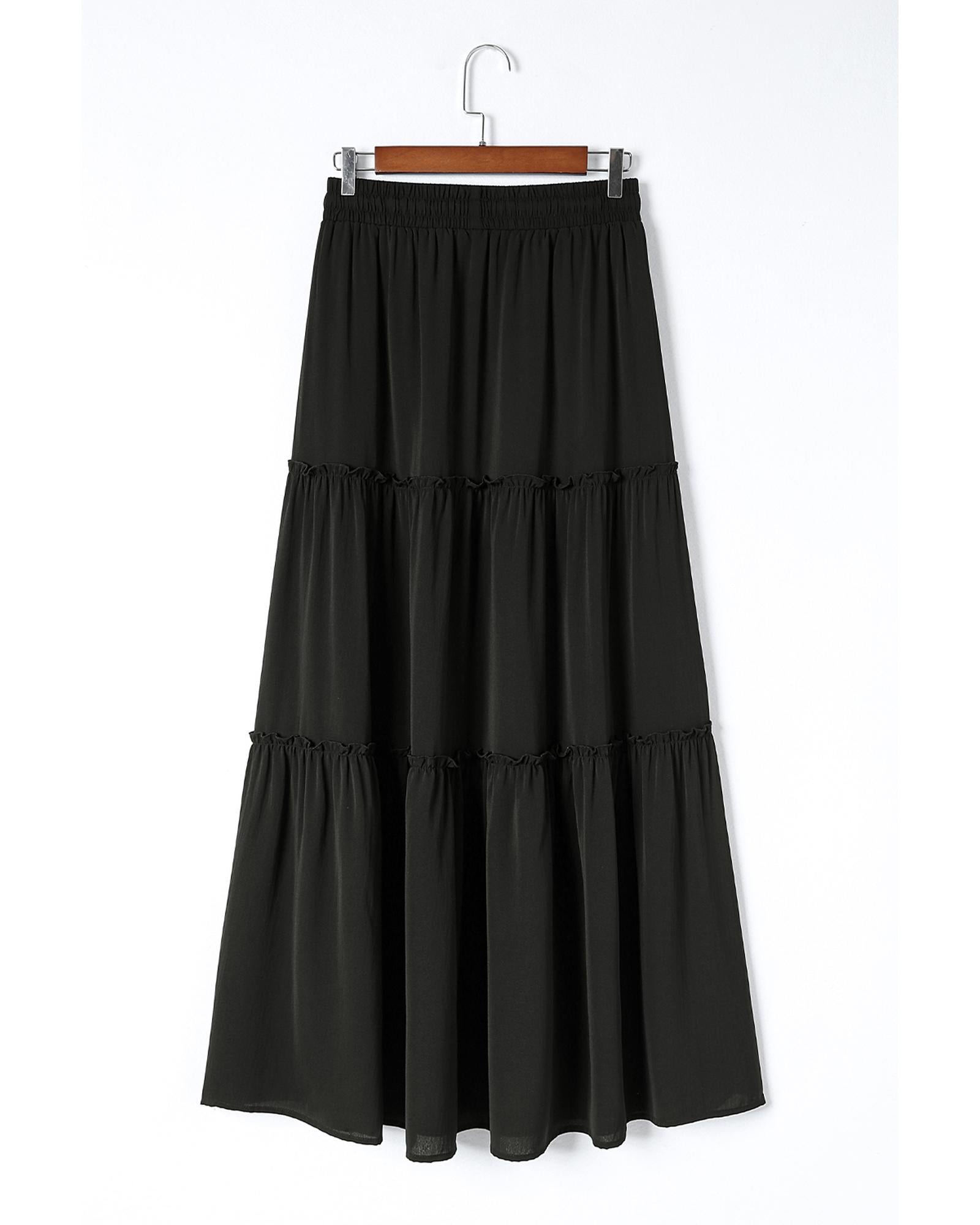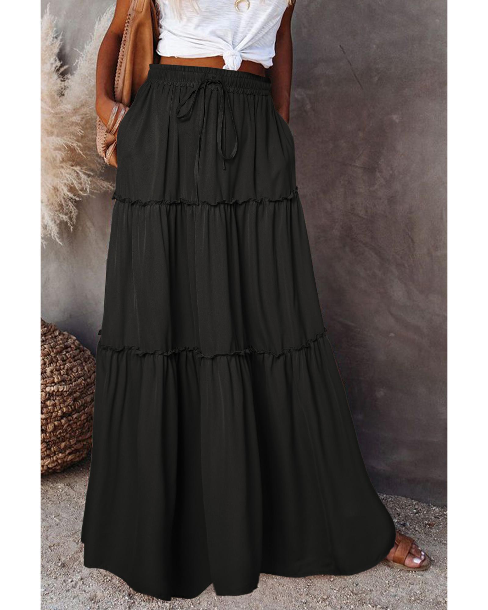 - Frill Tiered Drawstring Waist Maxi Skirt