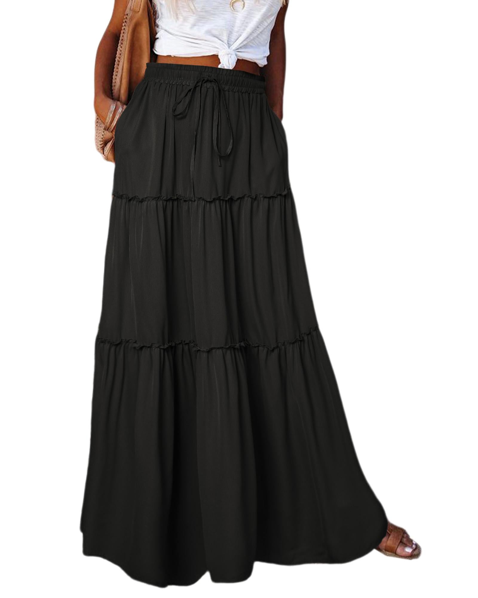 Azura Exchange Tiered Drawstring Waist Maxi Skirt - M