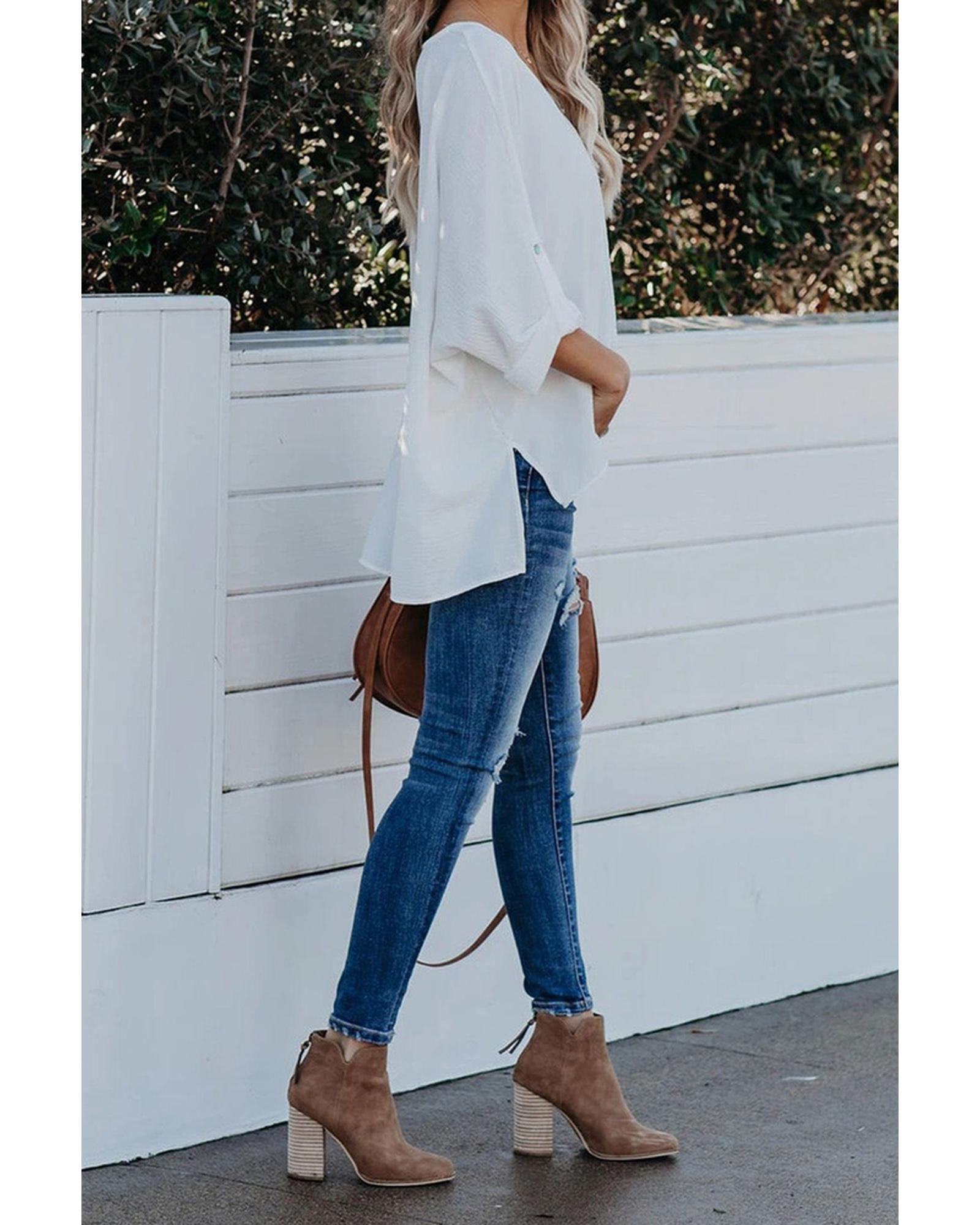 Azura Exchange V Neck 3/4 Sleeve High Low Hem Shirt - S