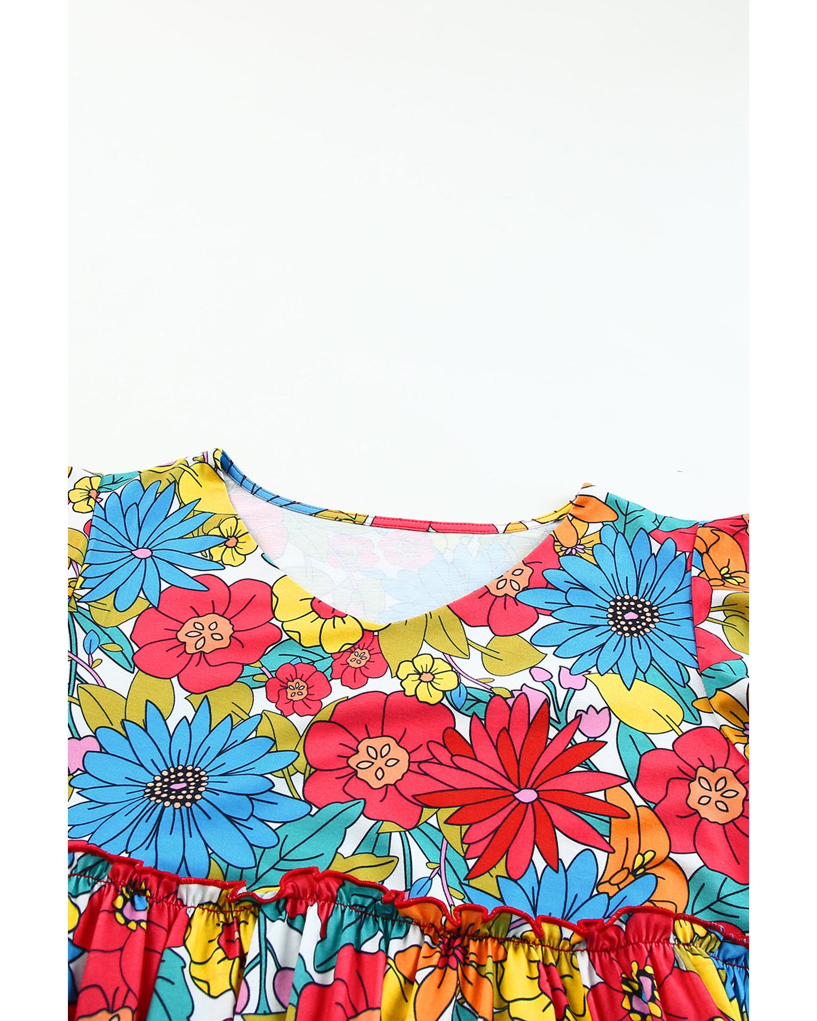 - Stylish and feminine V Neck Ruffled Floral Babydoll Top