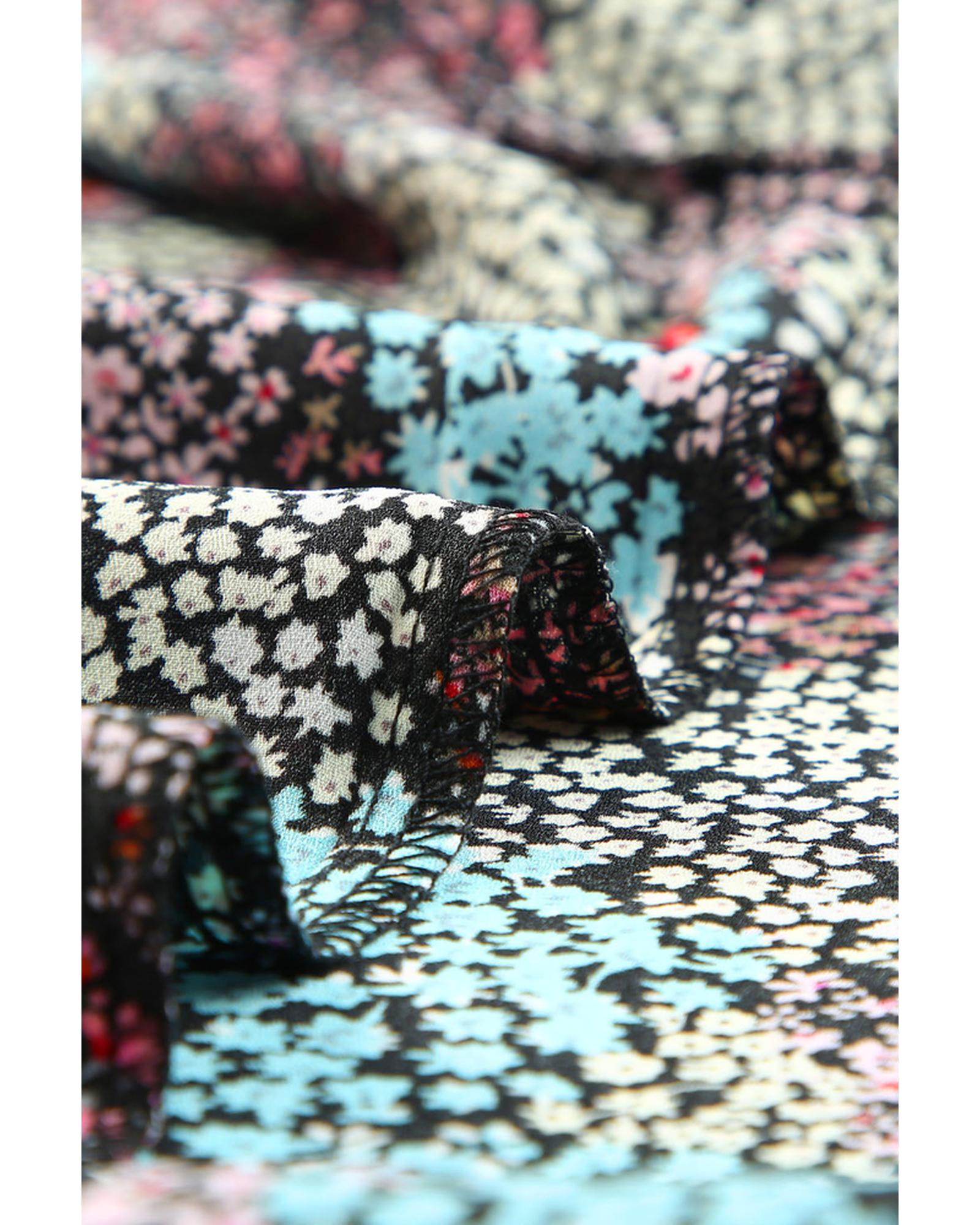 - Vibrant and stylish Multicolor Floral Tie V Neck Puff Sleeve Blouse
