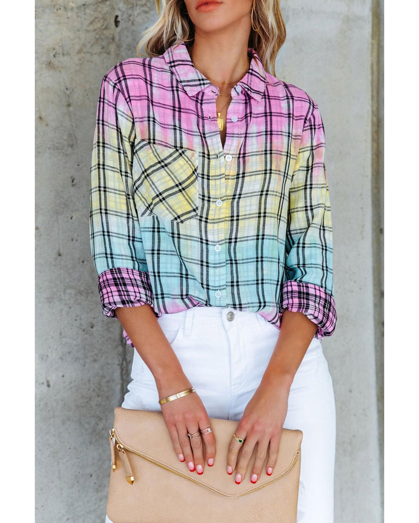 Azura Exchange Vibrant Tie Dye Plaid Button Up Shirt - M