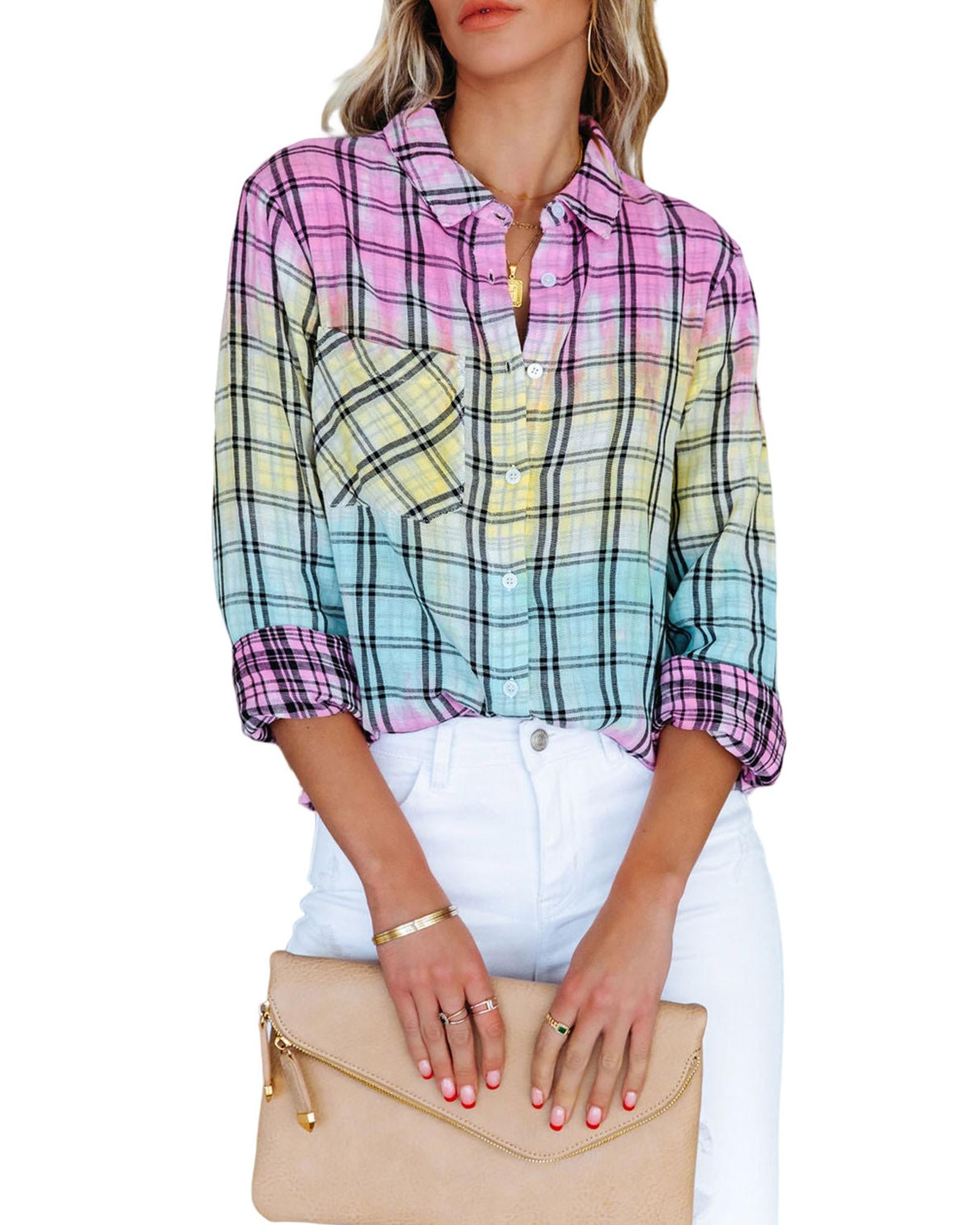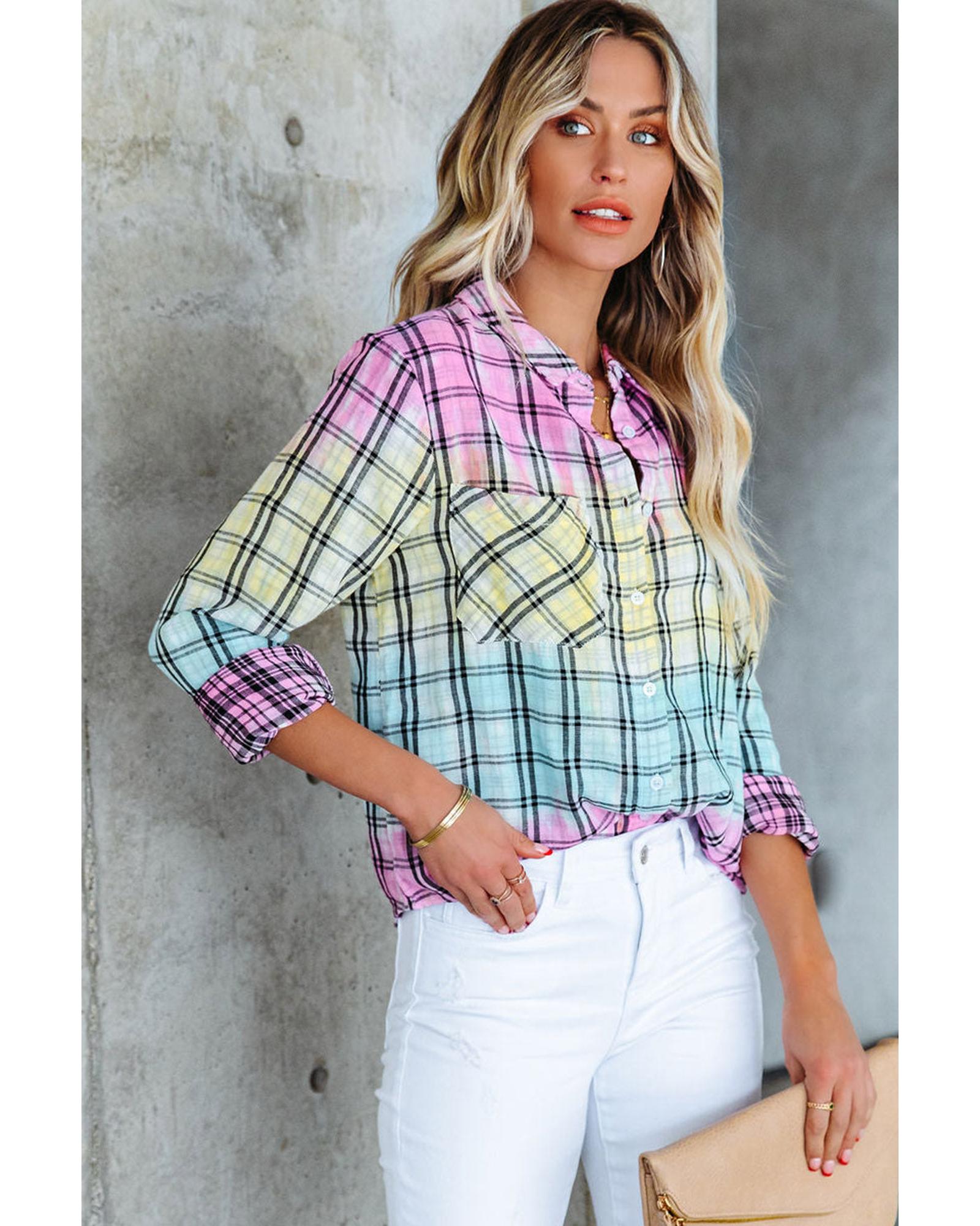 Azura Exchange Vibrant Tie Dye Plaid Button Up Shirt - XL