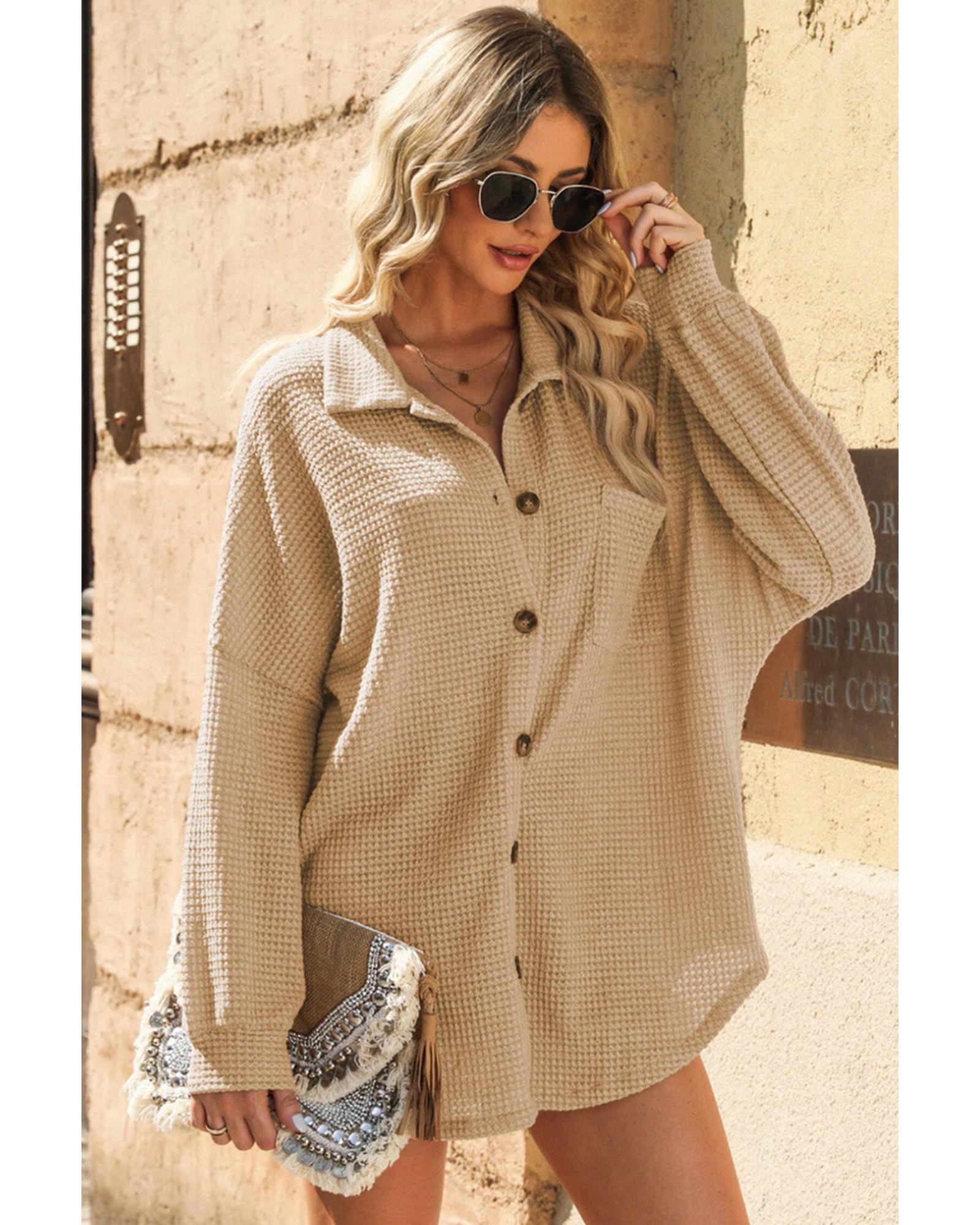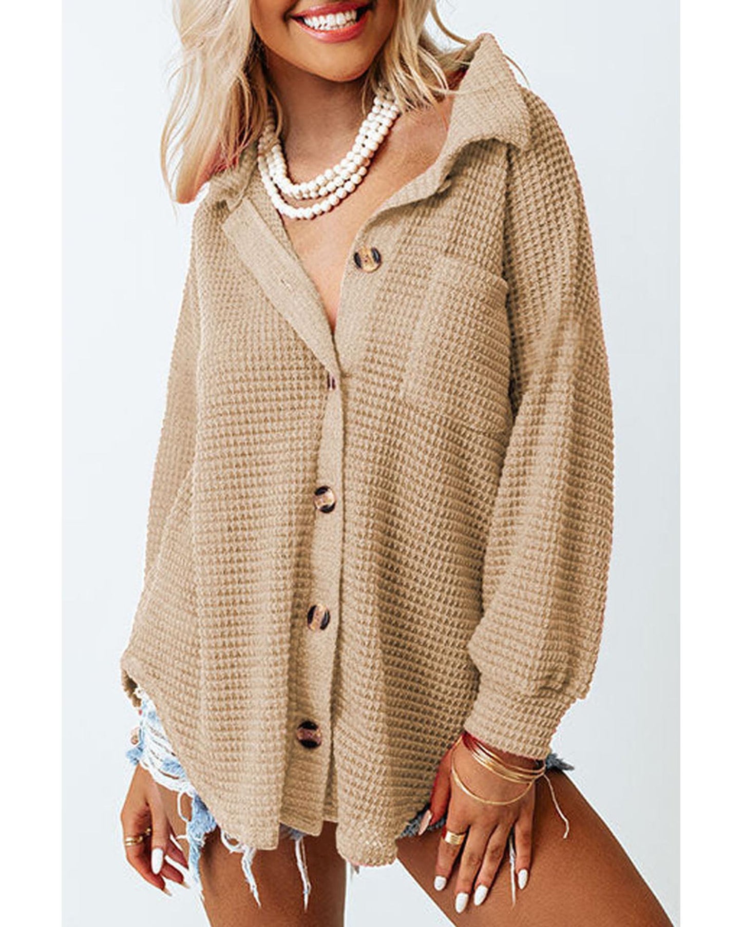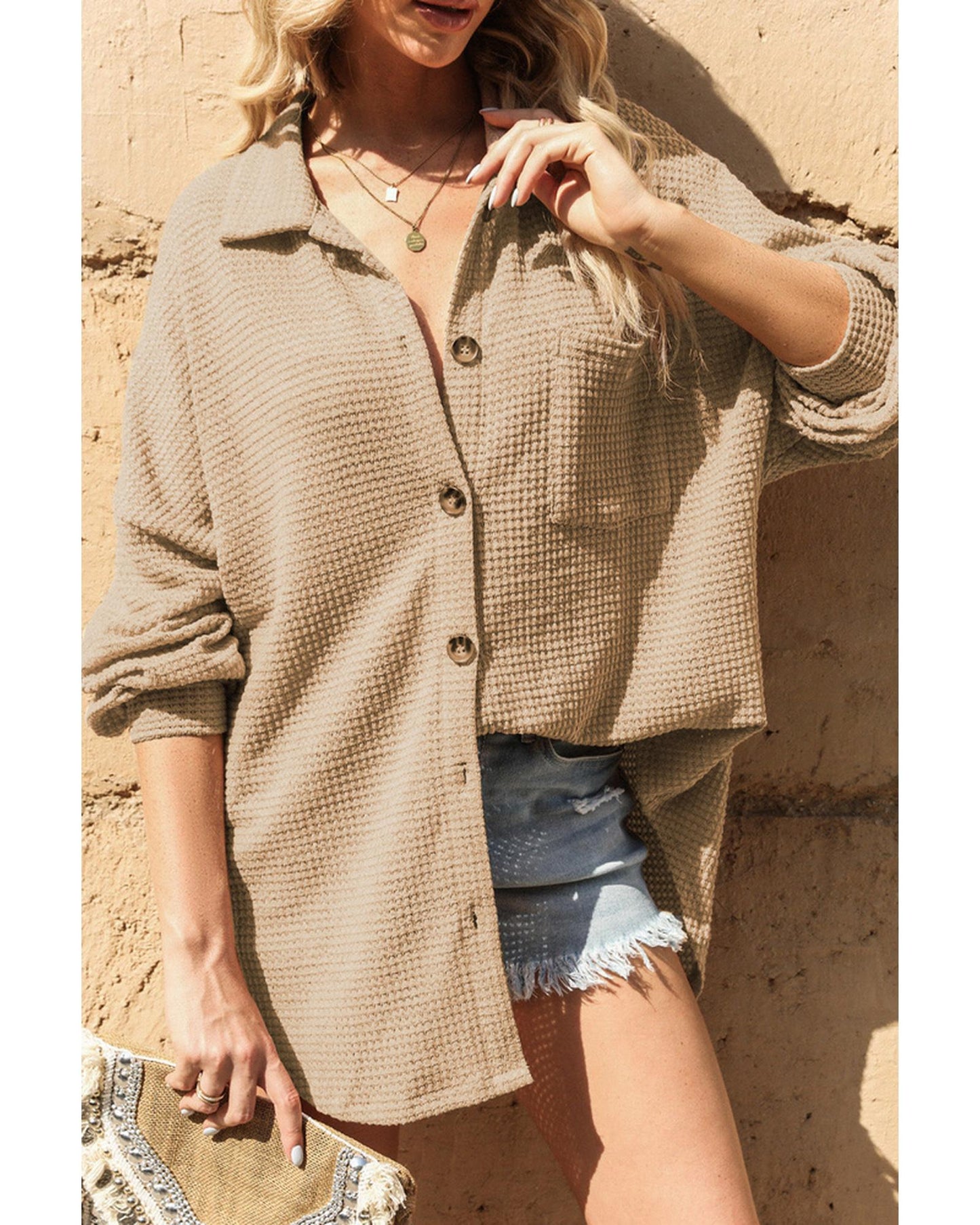 Azura Exchange Waffle Knit Button Up Shirt - L