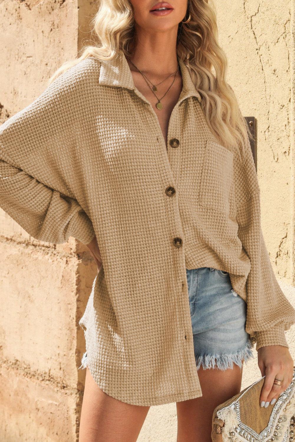 Azura Exchange Waffle Knit Button Up Shirt - XL