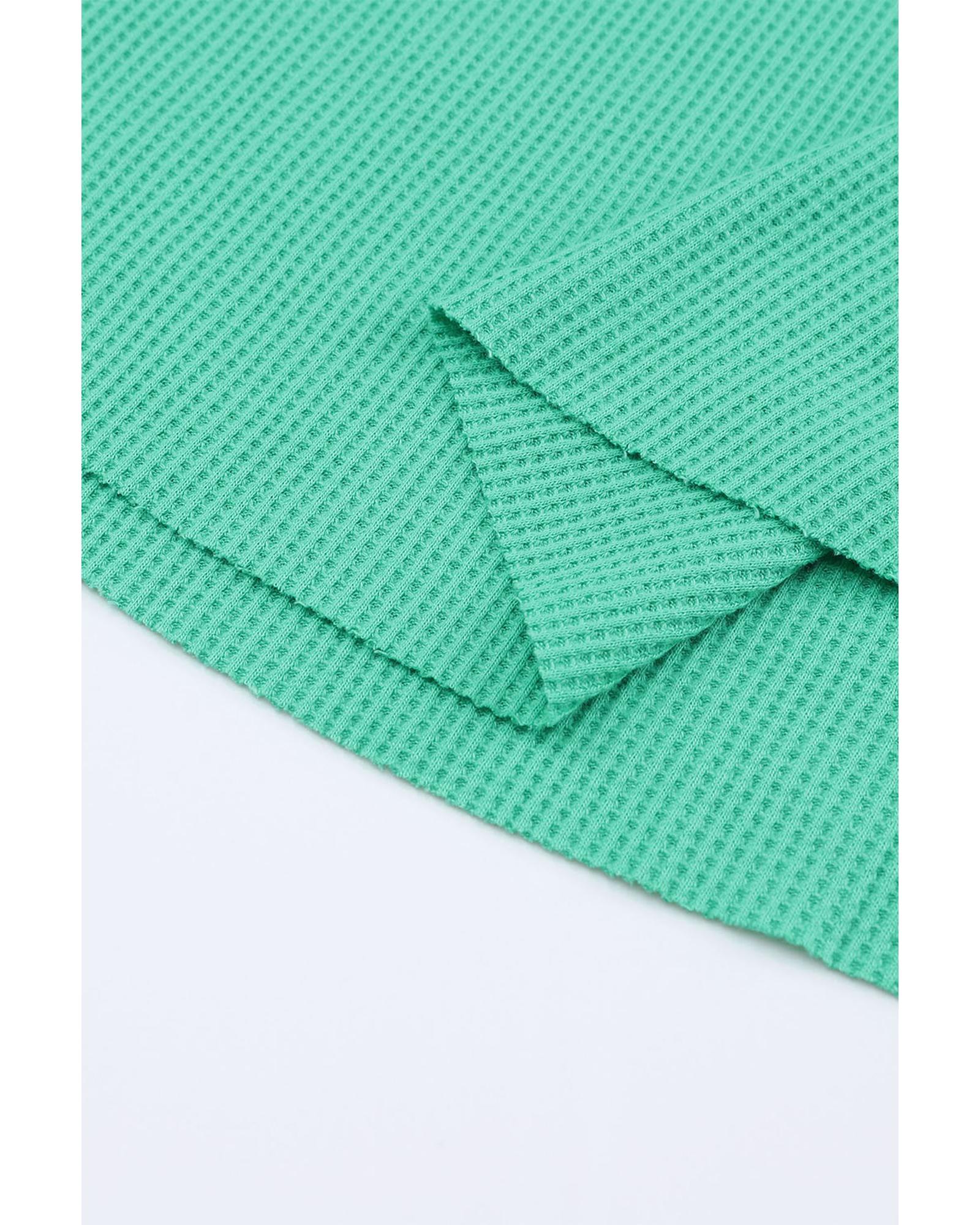 - Waffle knit fabric adds texture and dimension