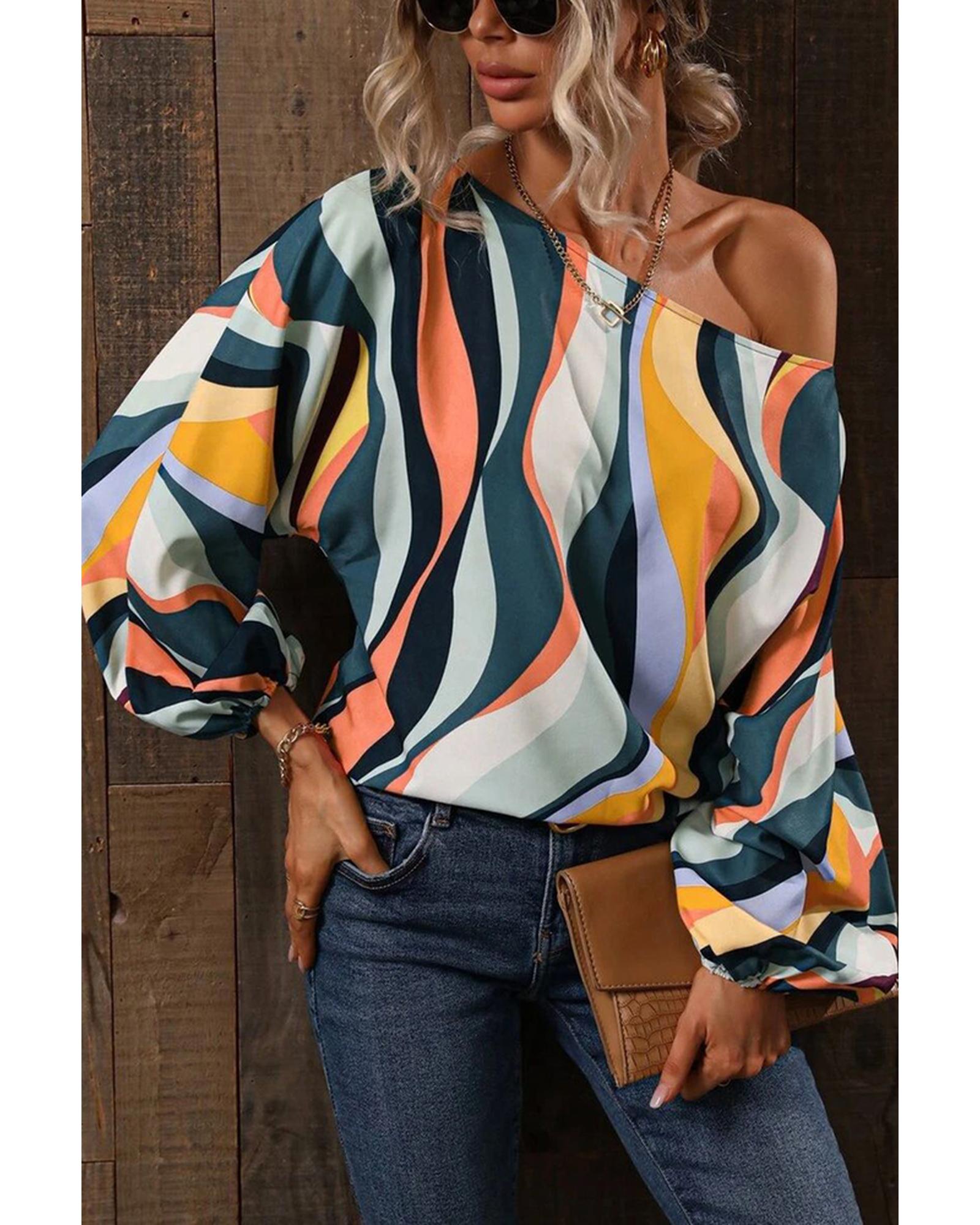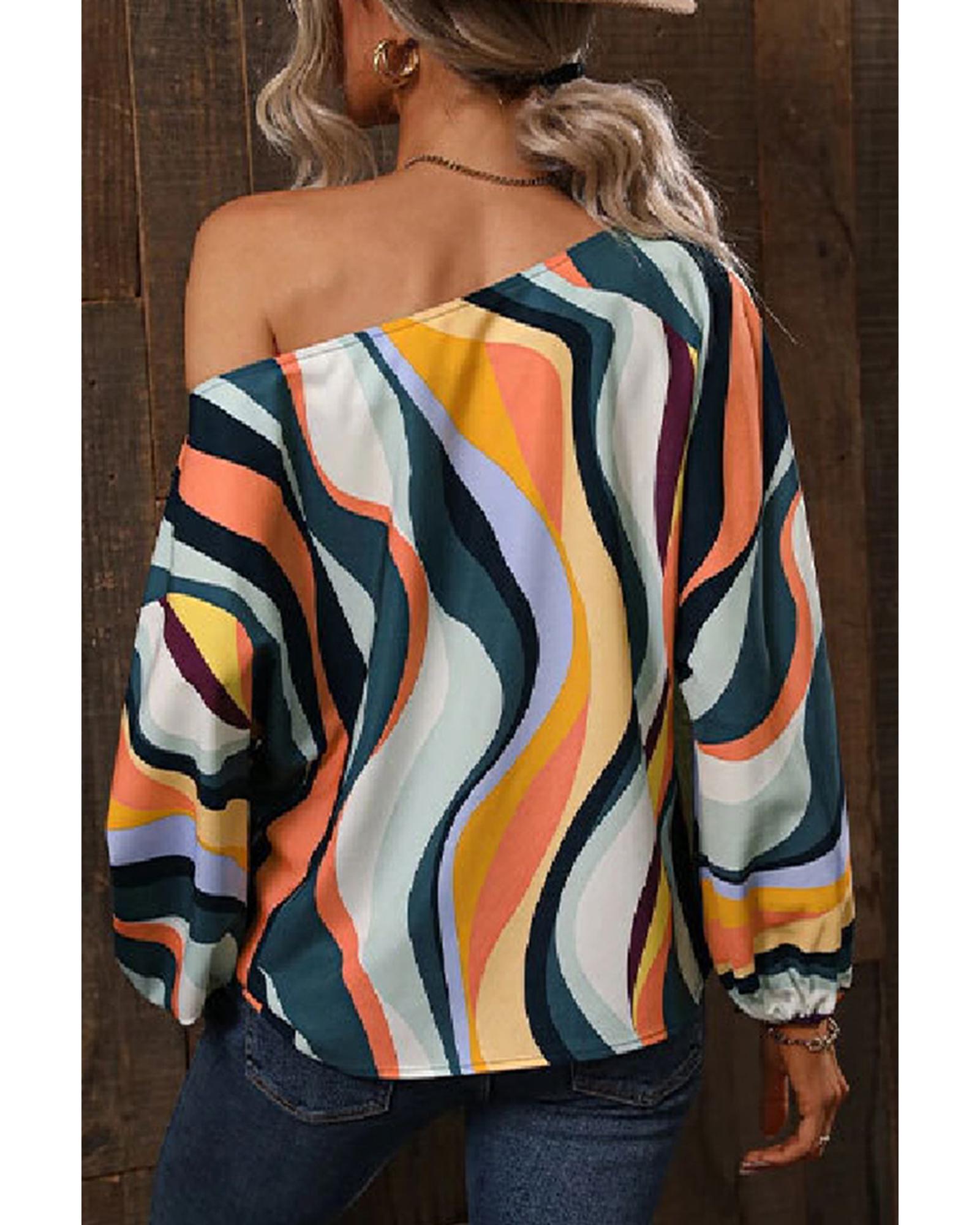 - Stylish and trendy multicolor wavy striped boat neck blouse