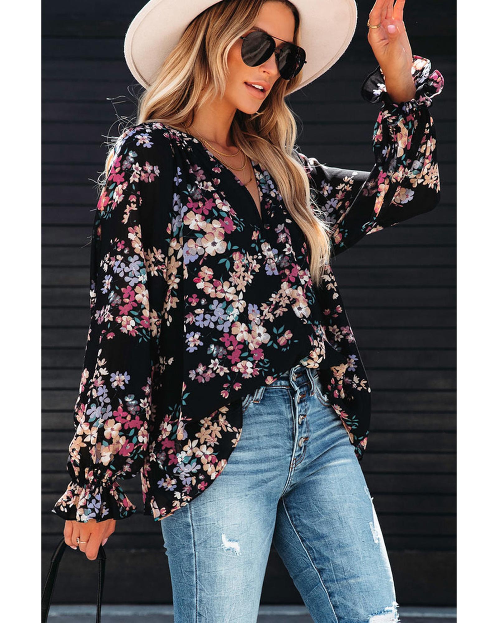 Azura Exchange Wildflower Print Chiffon Blouse - M