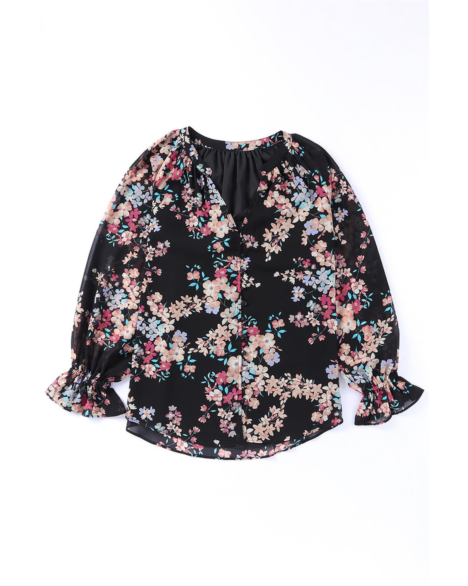 - Womens Wildflower Print Chiffon Blouse