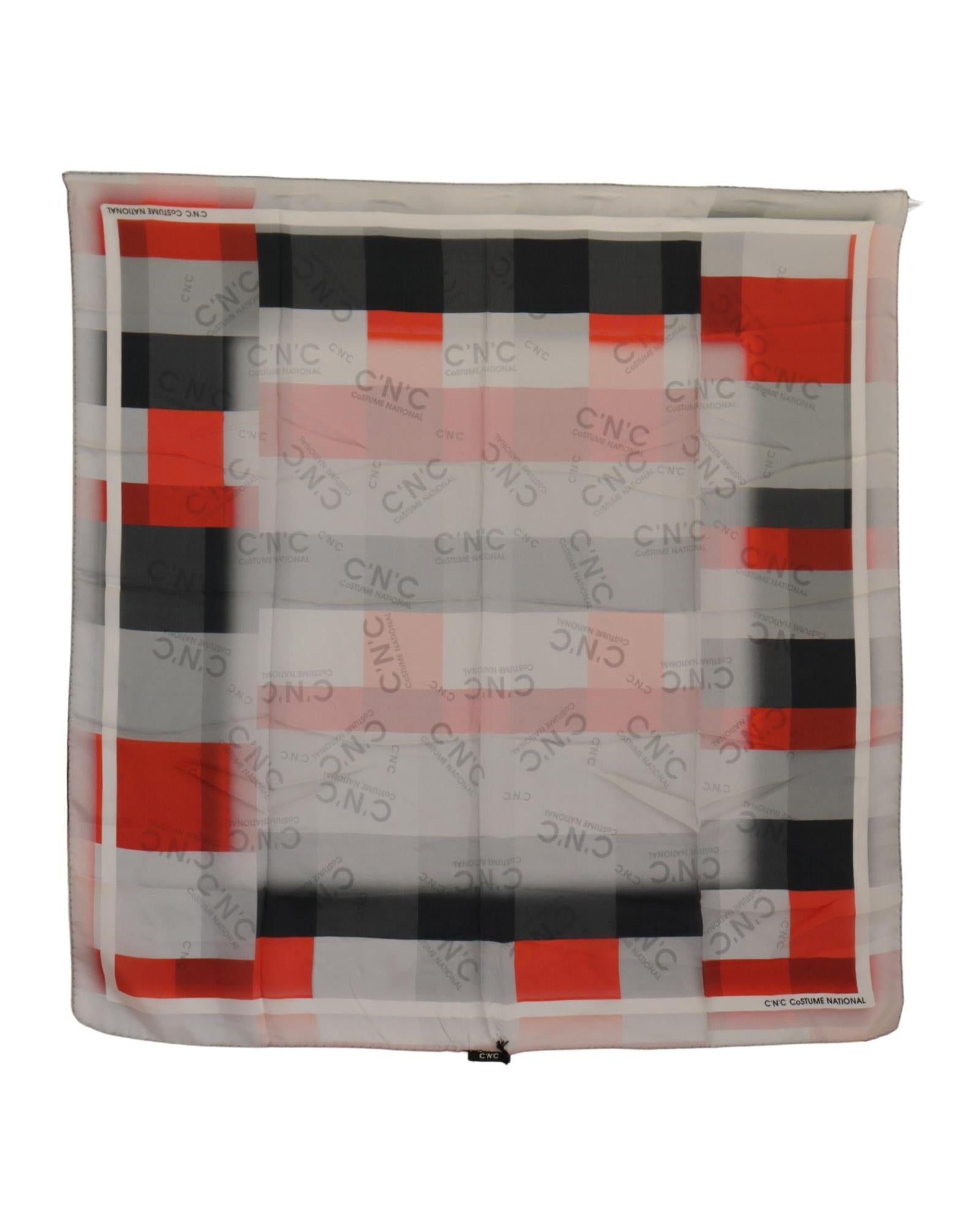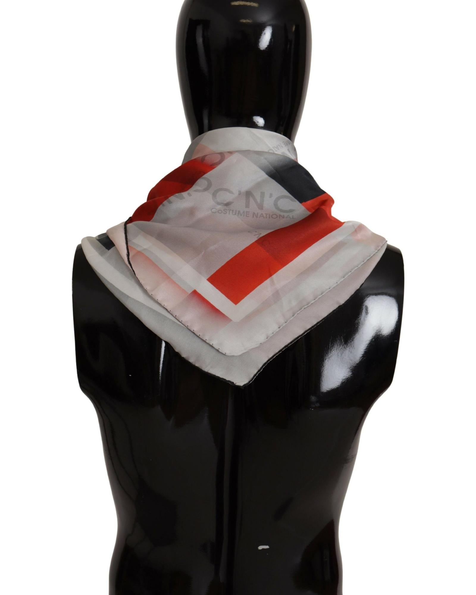 Costume National Women's Gray Red Silk Shawl Foulard Wrap Scarf - One Size