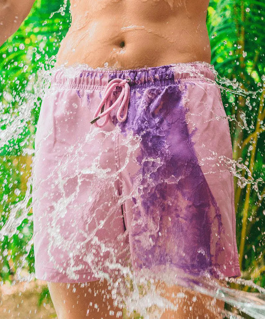 To maintain the vibrant color-changing properties of your shorts, we recommend washing in cold water with mild detergent and avoiding bleach or harsh chemicals. Line drying is preferable to machine drying, as extreme heat may impact the reactive properties of the specialized dyes. With proper care, the color-changing effect will continue to delight you and others for many seasons to come.