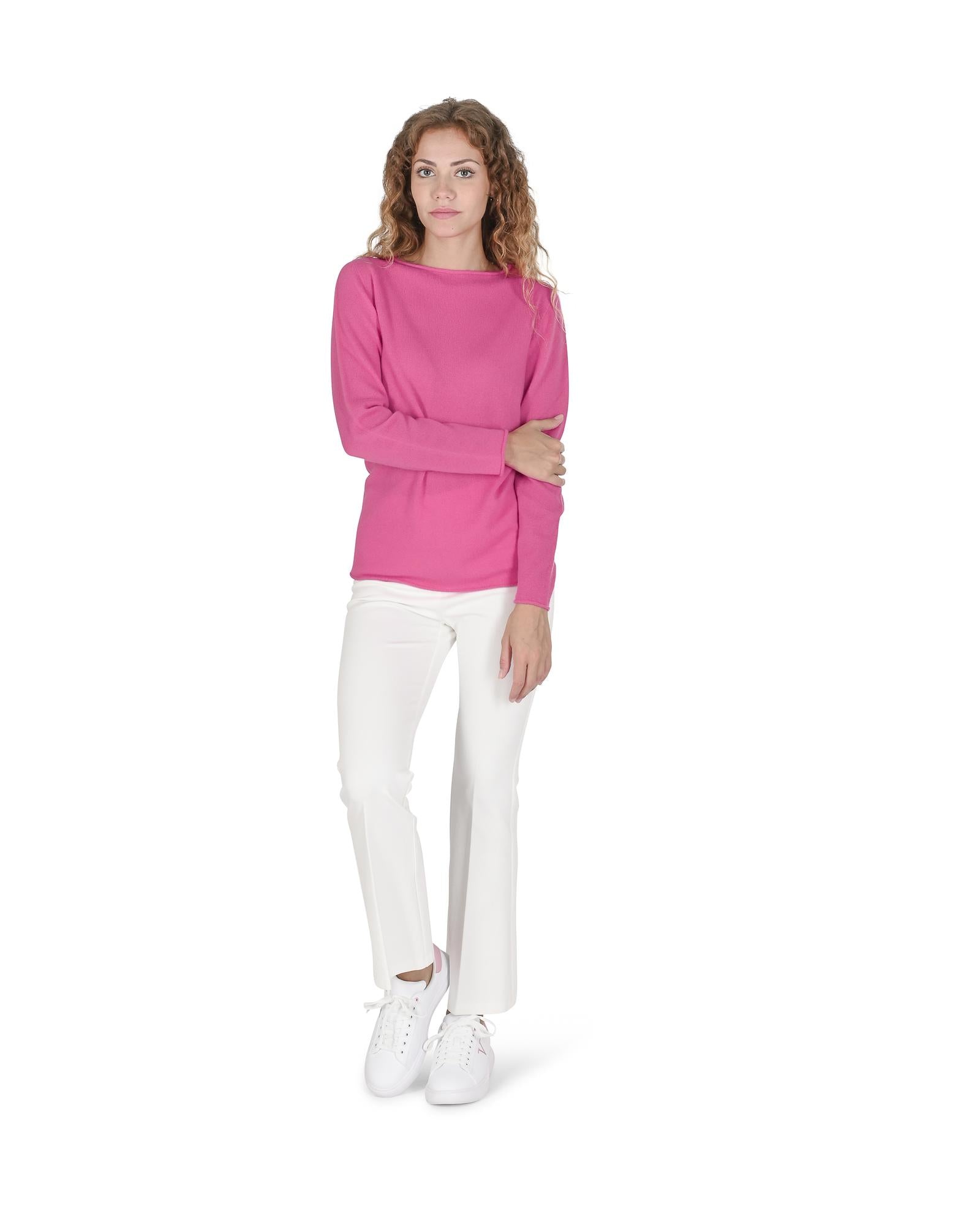 Crown of Edinburgh Cashmere Women's Cashmere Boatneck Sweater in Fuchsia - M