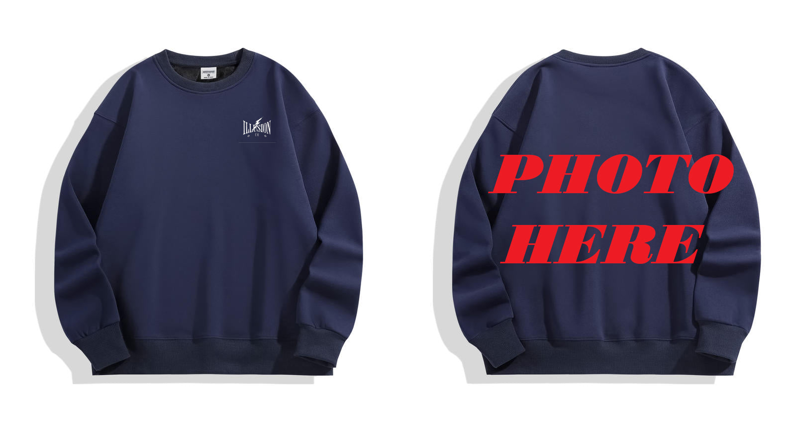 To maintain the premium appearance and performance features of your Custom Back ILLUSION CO Classic Logo Crewneck Sweatshirt, machine wash in cold water with similar colors. The cotton-polyester blend minimizes shrinkage concerns while maintaining dimensional stability through washing. Turn the garment inside out before washing to protect both the classic front logo and your custom back design from unnecessary friction.