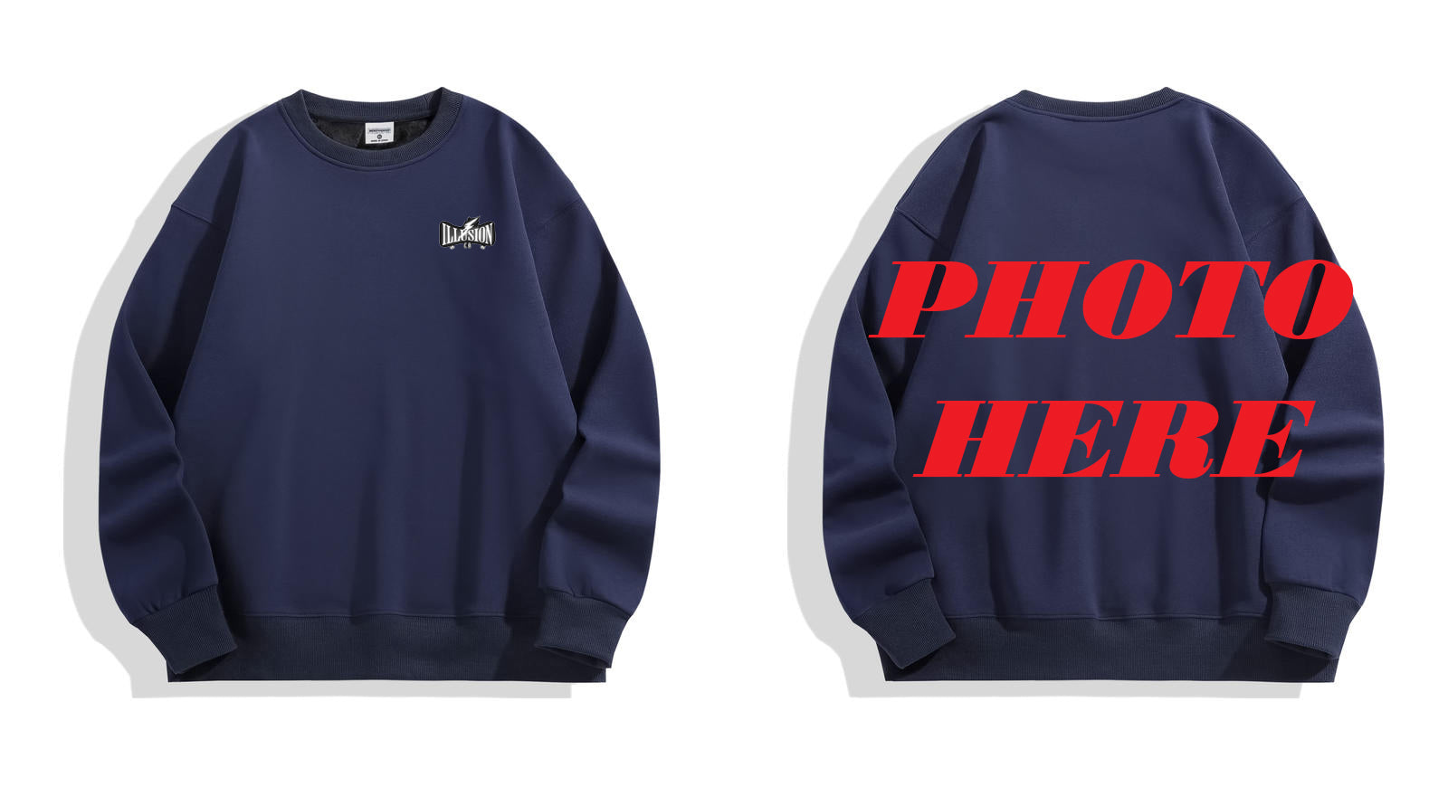 To maintain the premium appearance and performance features of your Custom Back ILLUSION CO Logo Crewneck Sweatshirt, machine wash in cold water with similar colors. The cotton-polyester blend minimizes shrinkage concerns while maintaining dimensional stability through washing. Turn the garment inside out before washing to protect both the ILLUSION CO front logo and your custom back design from unnecessary abrasion.
