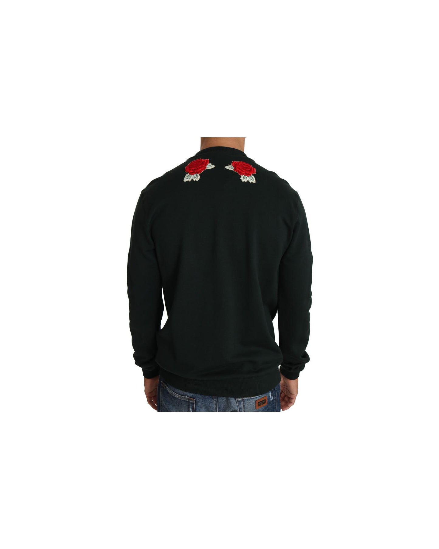 Dolce & Gabbana Green Cotton Crystal Heart Roses Embroidered Pullover Sweater 52 IT Men