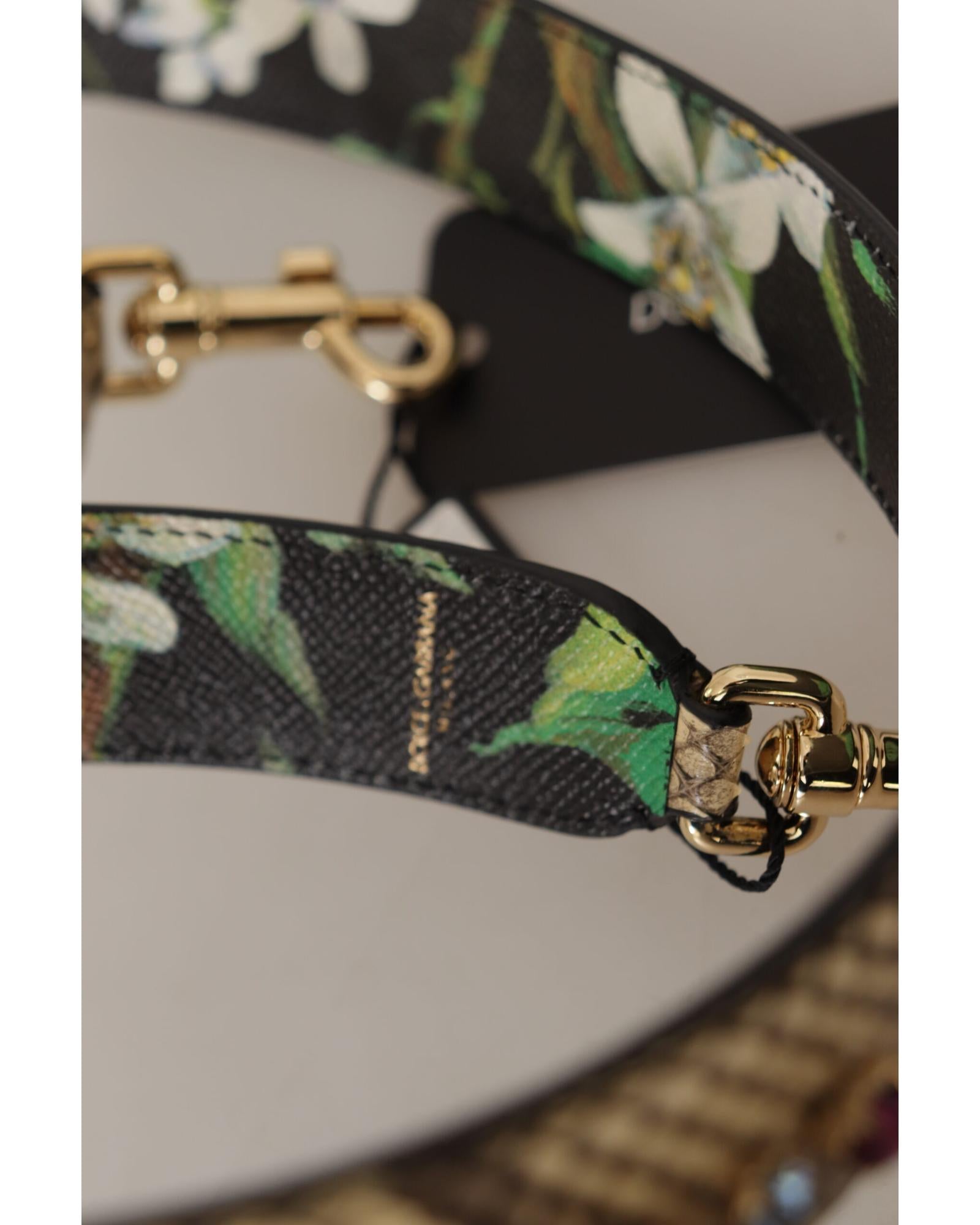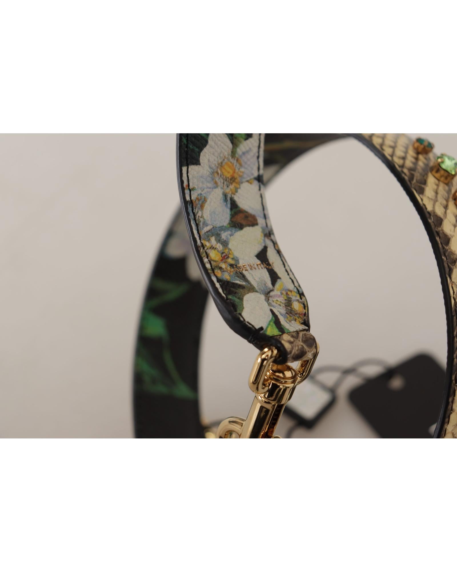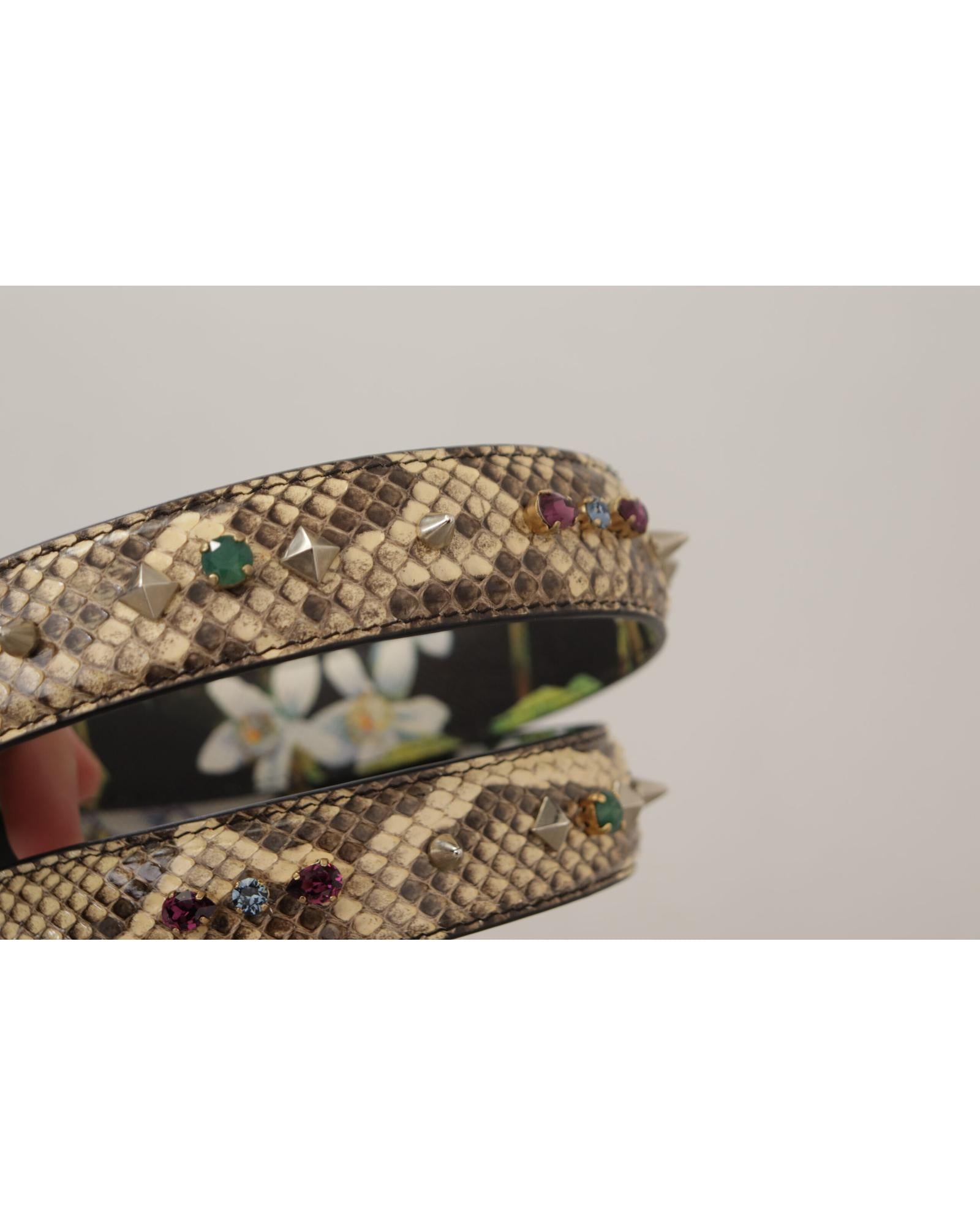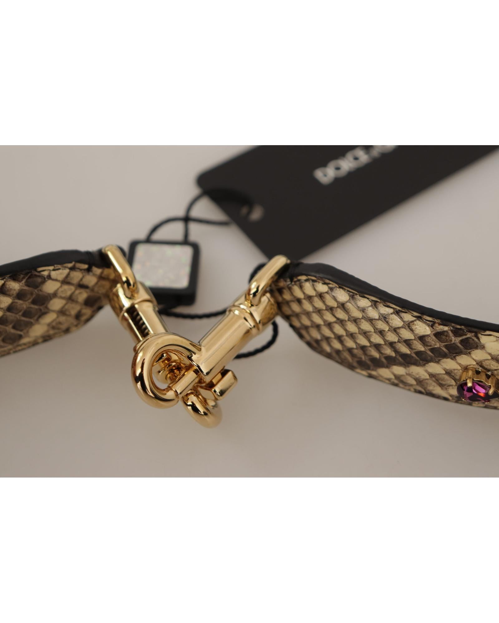 Dolce & Gabbana Women's Beige Exotic Leather Crystals Reversible Shoulder Strap - One Size