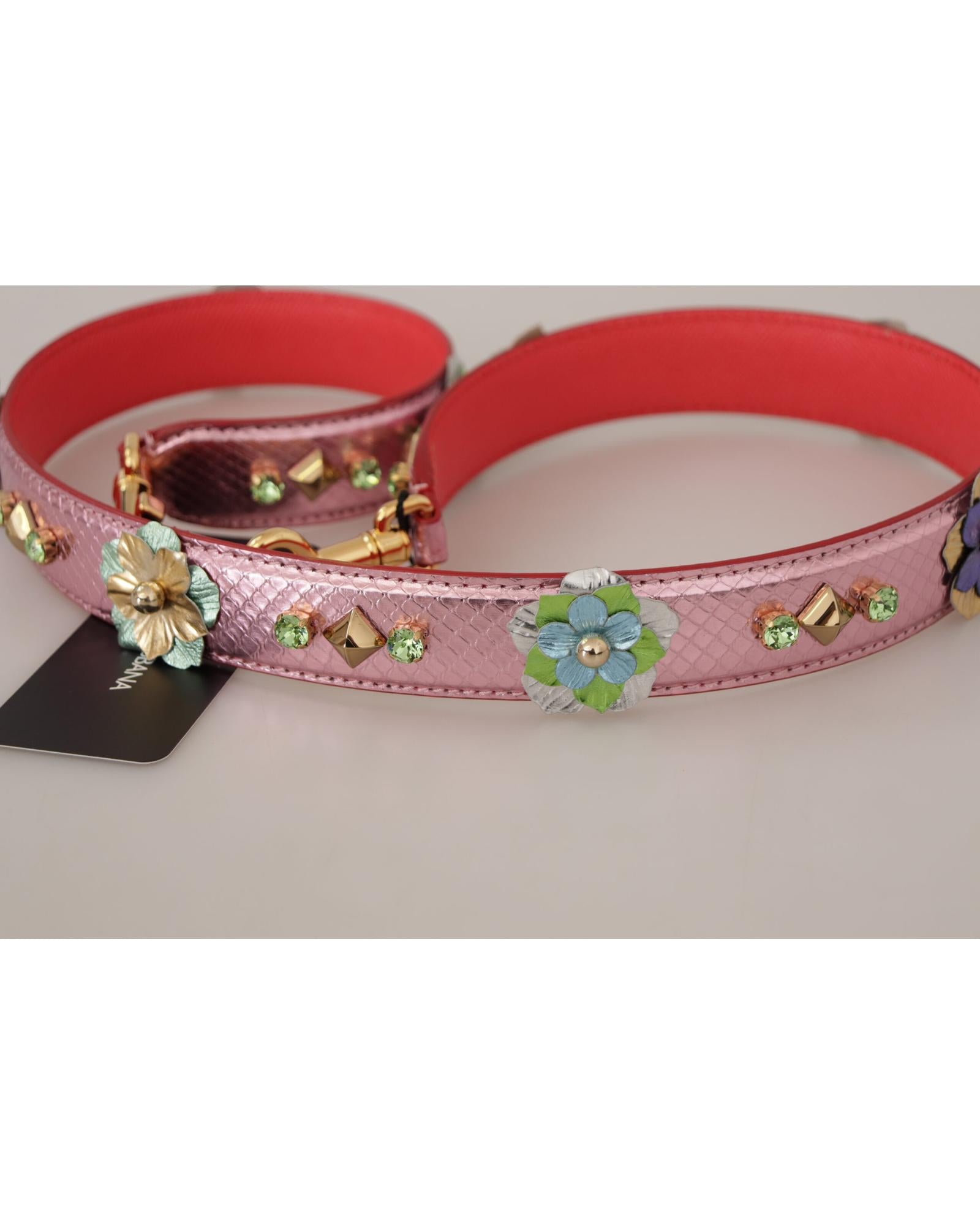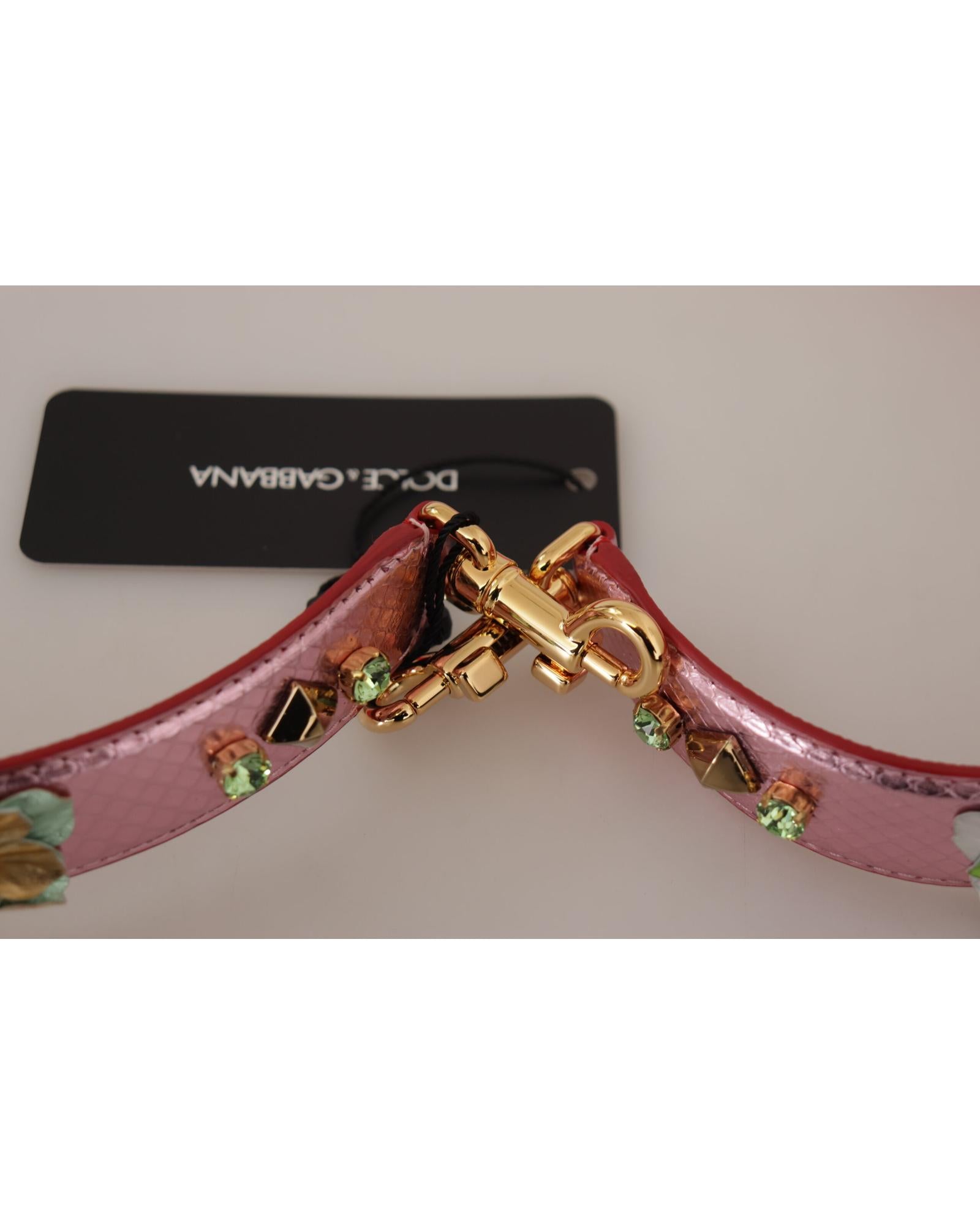 Dolce & Gabbana Women's Metallic Pink Leather Studded Shoulder Strap - One Size