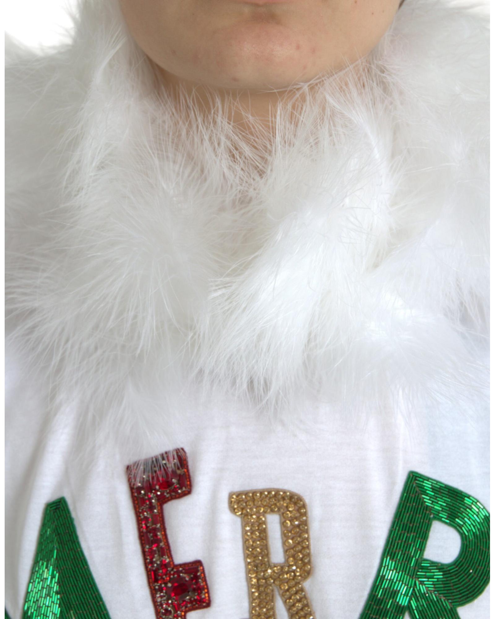Dolce & Gabbana Women's White Cotton Christmas Sequin Fur T-shirt - 38 IT