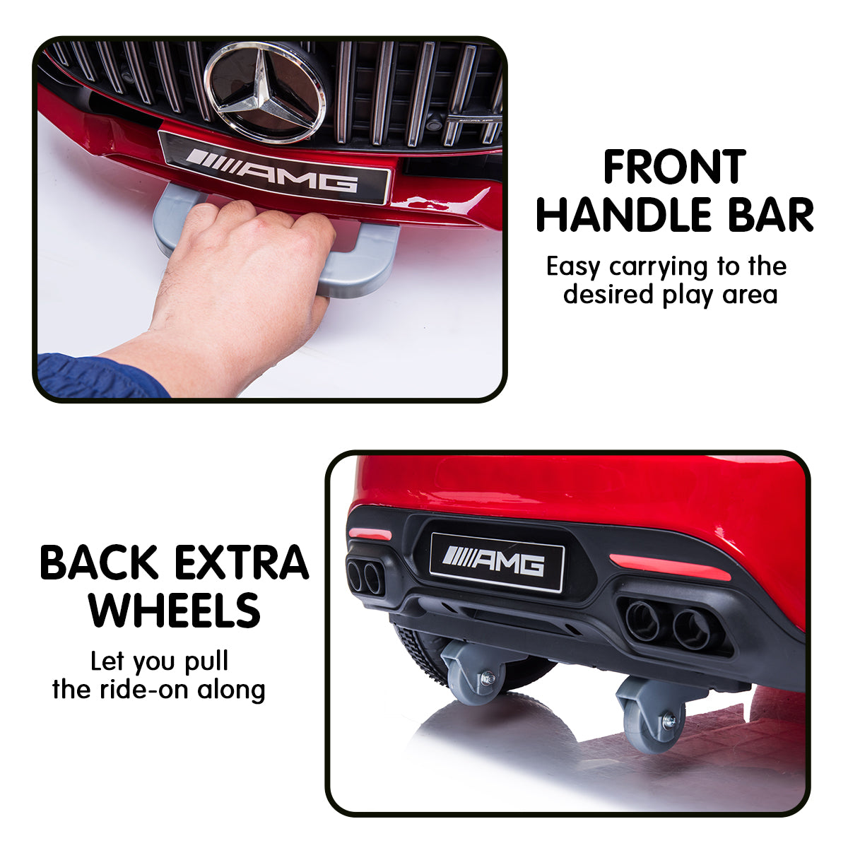 With the perfect balance of fun and safety, the Mercedes-AMG GTR Ride On Car is fun for the whole family.