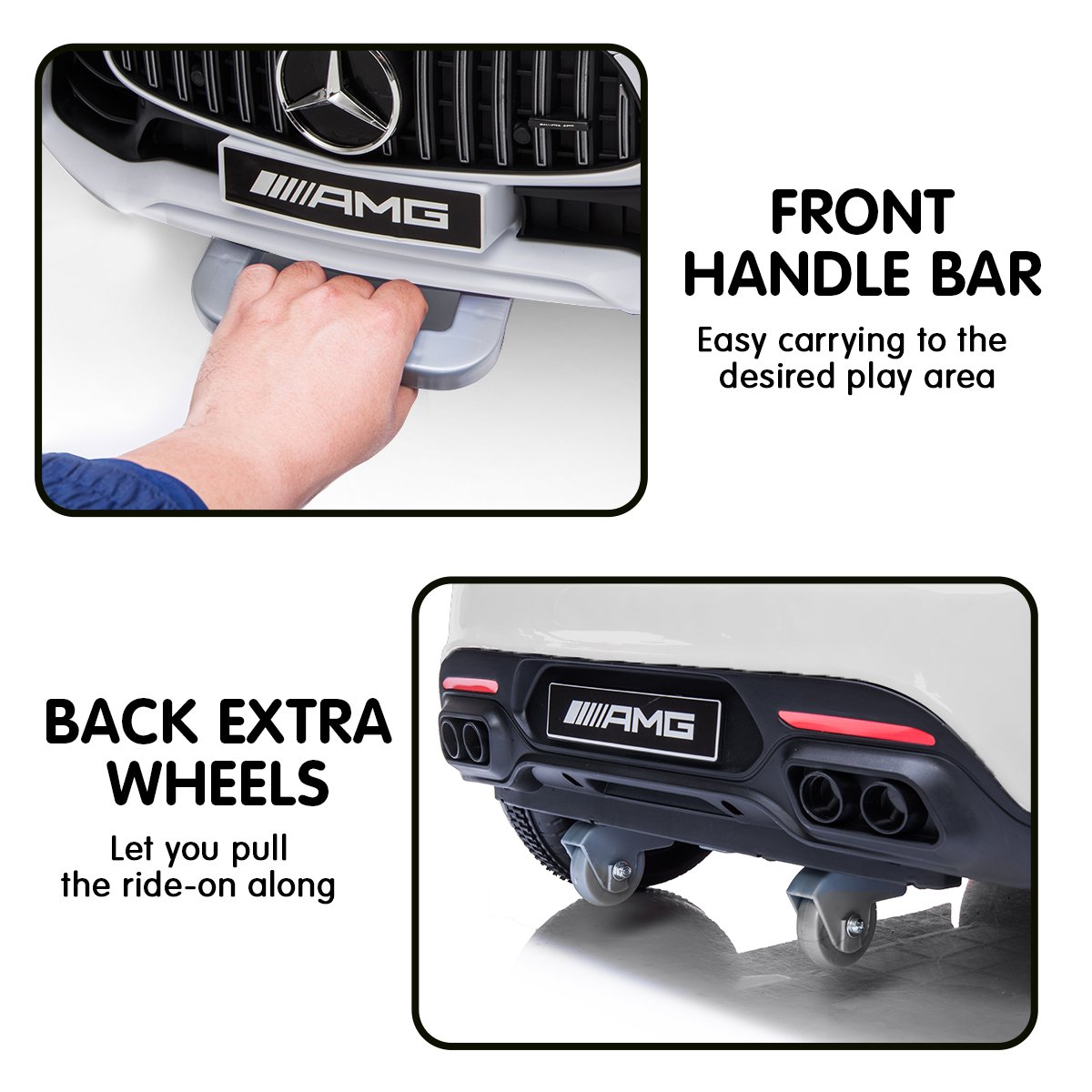 With the perfect balance of fun and safety, the Mercedes-AMG GTR Ride On Car is fun for the whole family.